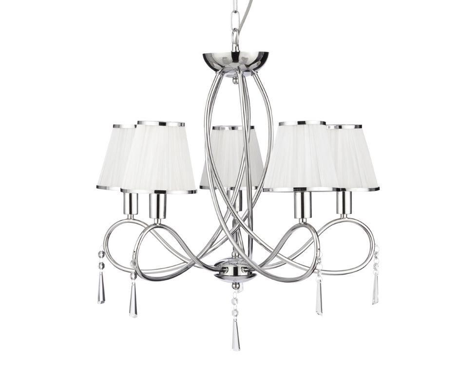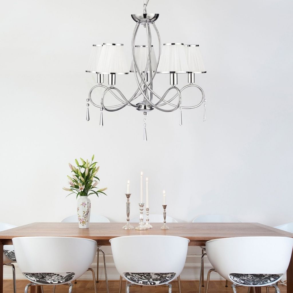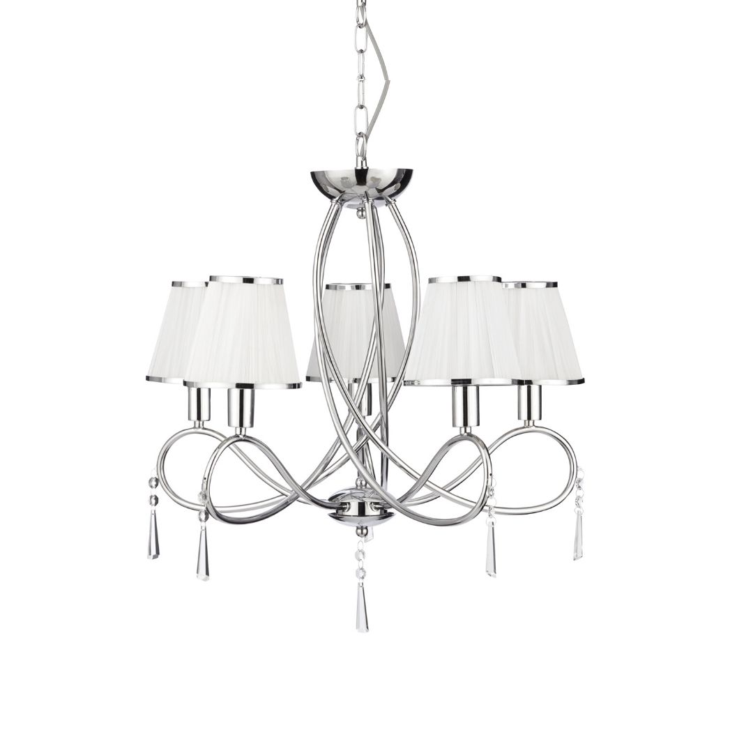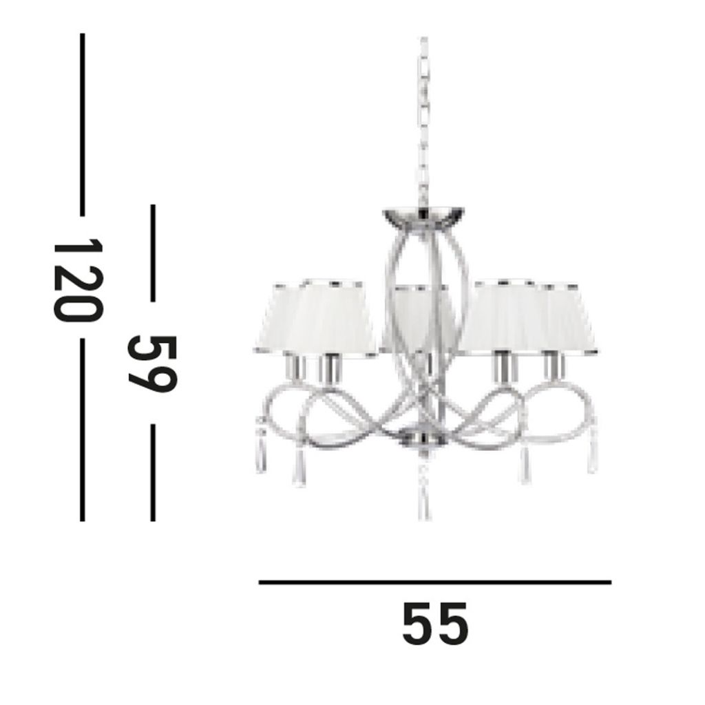 SIMPLICITY - 5x zdroj, závěsné svítidlo, chrom, čiré sklo, bílé šňůrky stínítka