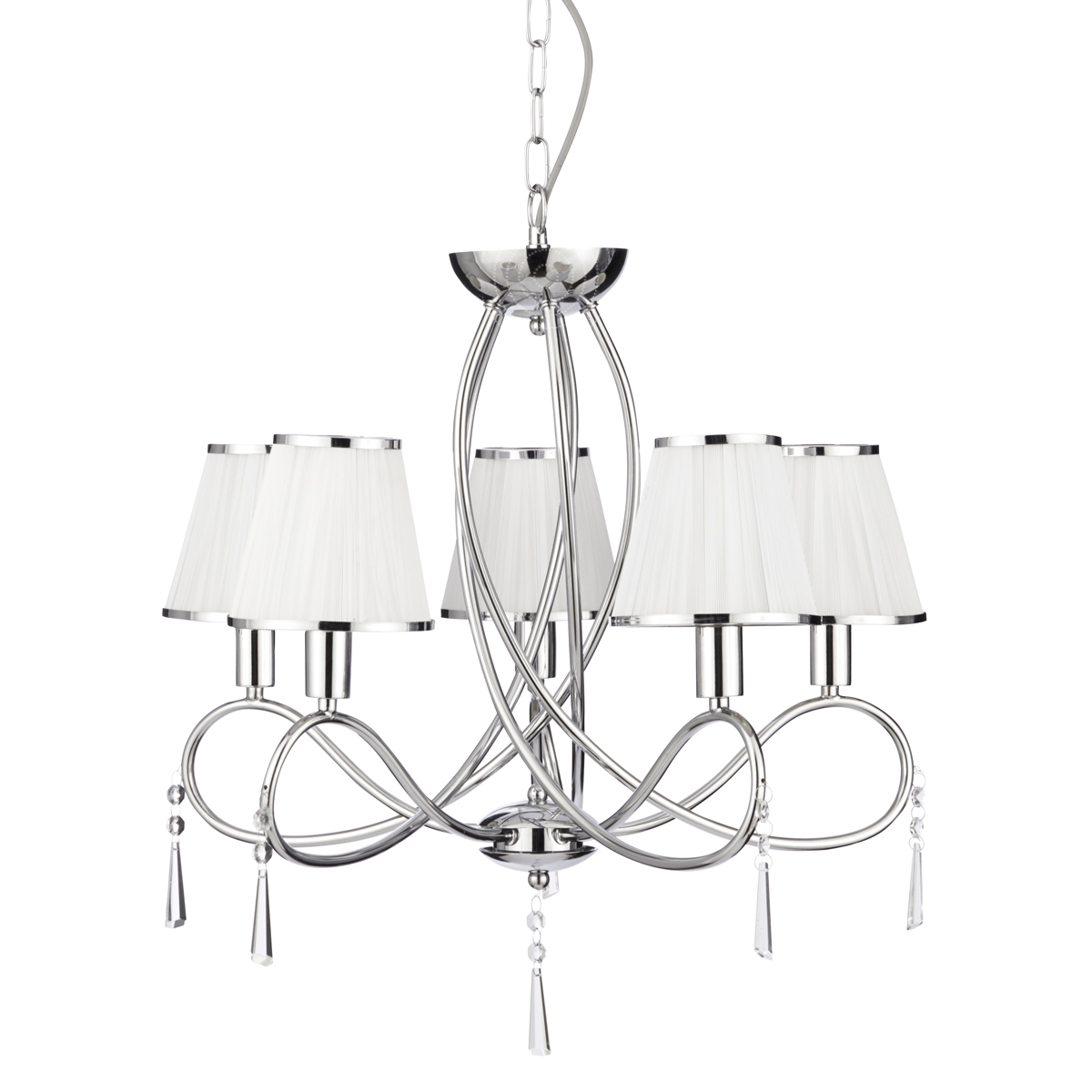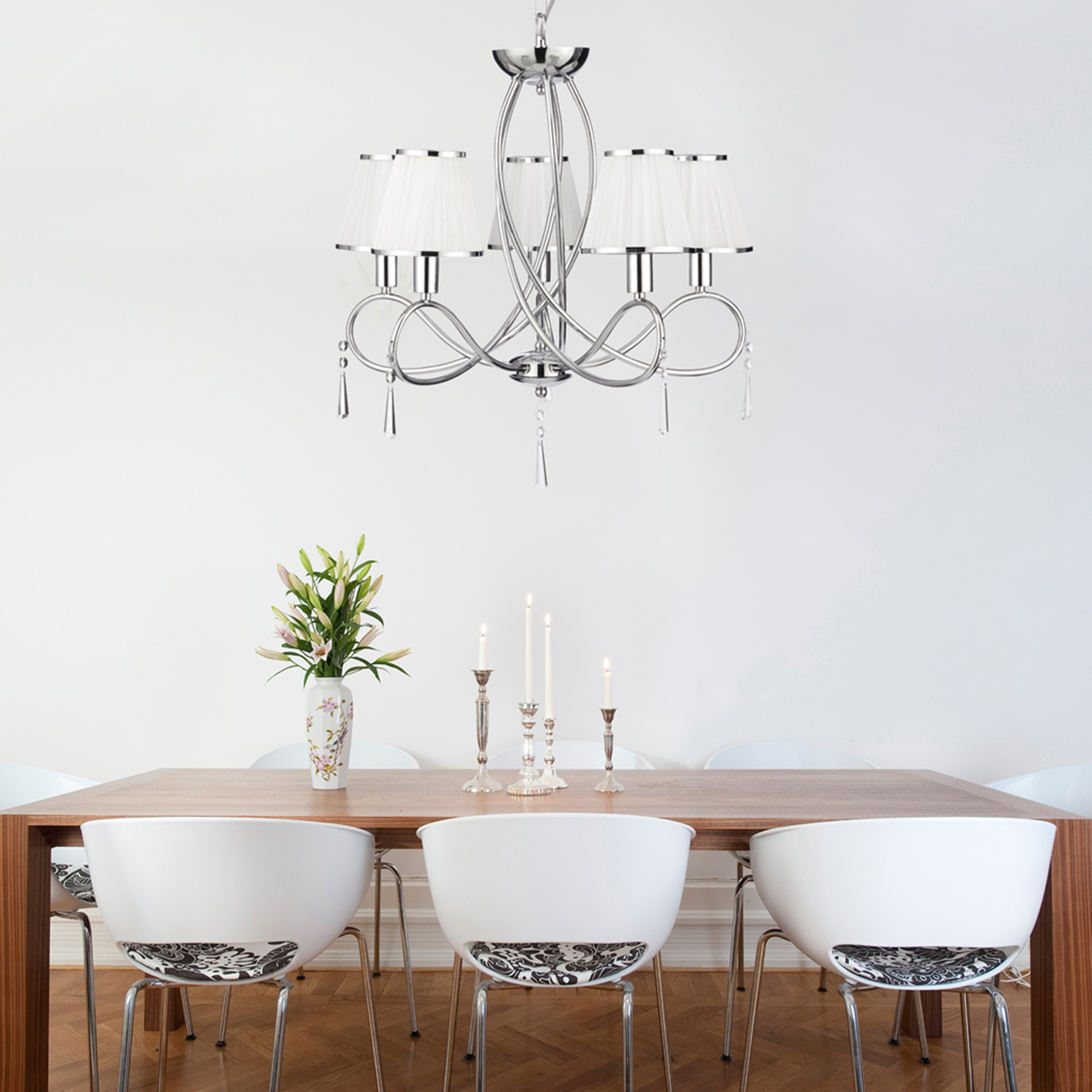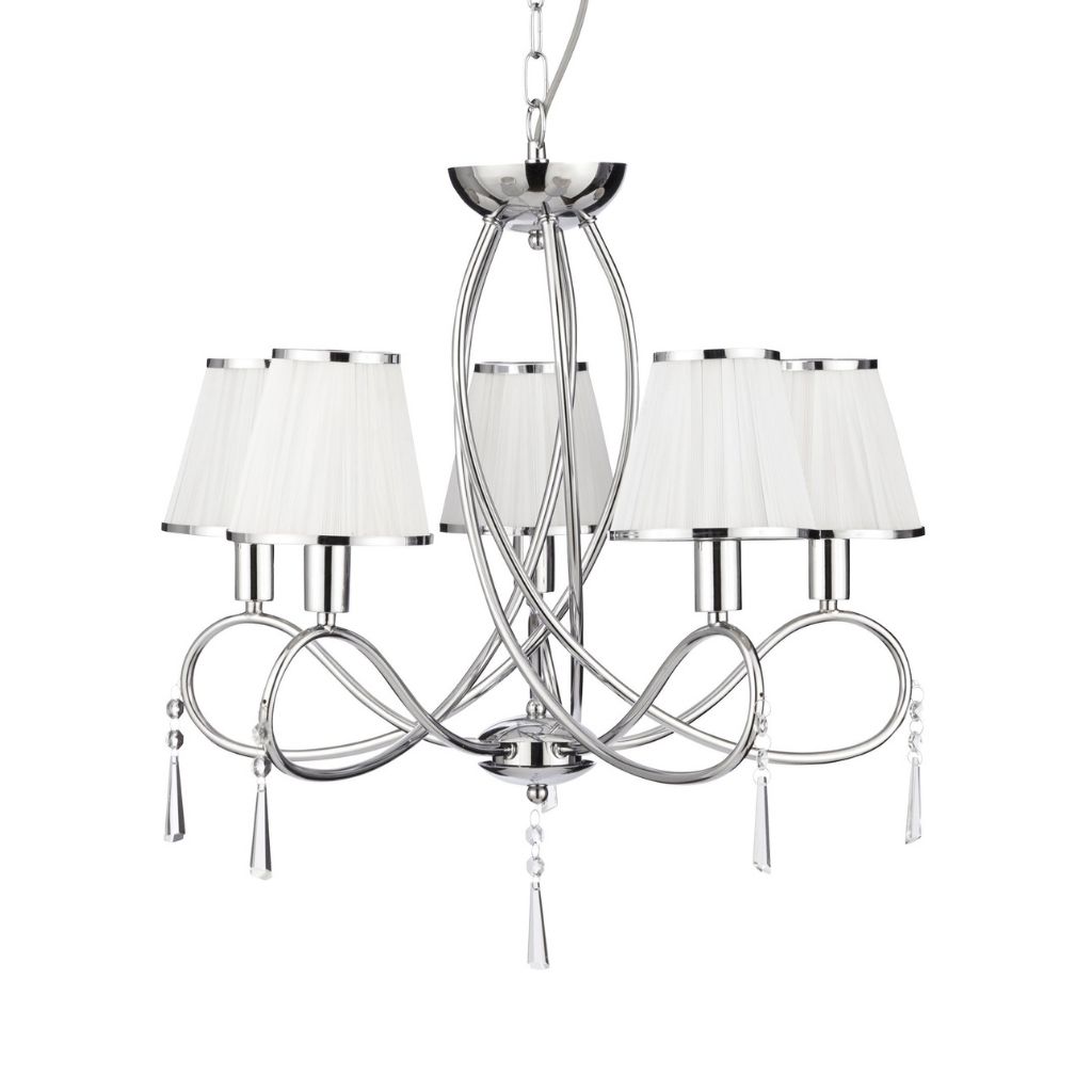 SIMPLICITY - 5x zdroj, závěsné svítidlo, chrom, čiré sklo, bílé šňůrky stínítka