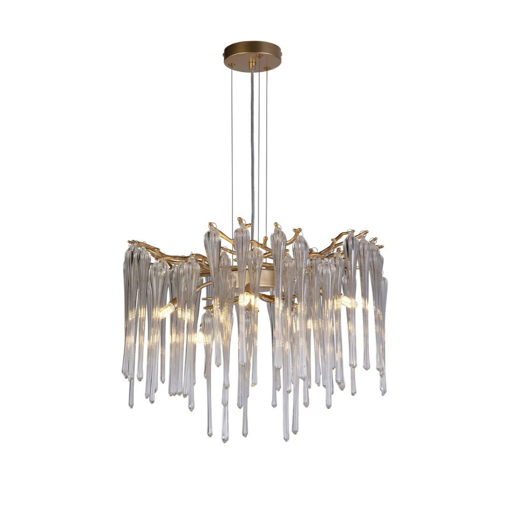 Searchlight závěsné svítidlo barva zlatá, povrchová úprava barvení, použitý materiál je měkká ocel a sklo. Rozměry v cm: celková výška: 100, výška: 45, šířka: 50, délka: 50, projekce: 0. Světelný zdroj objímka G9, potřeba žárovek 5, světelný zdroj není v balení, doporučený typ žárovky od výrobce je G9 na max. 33W.
