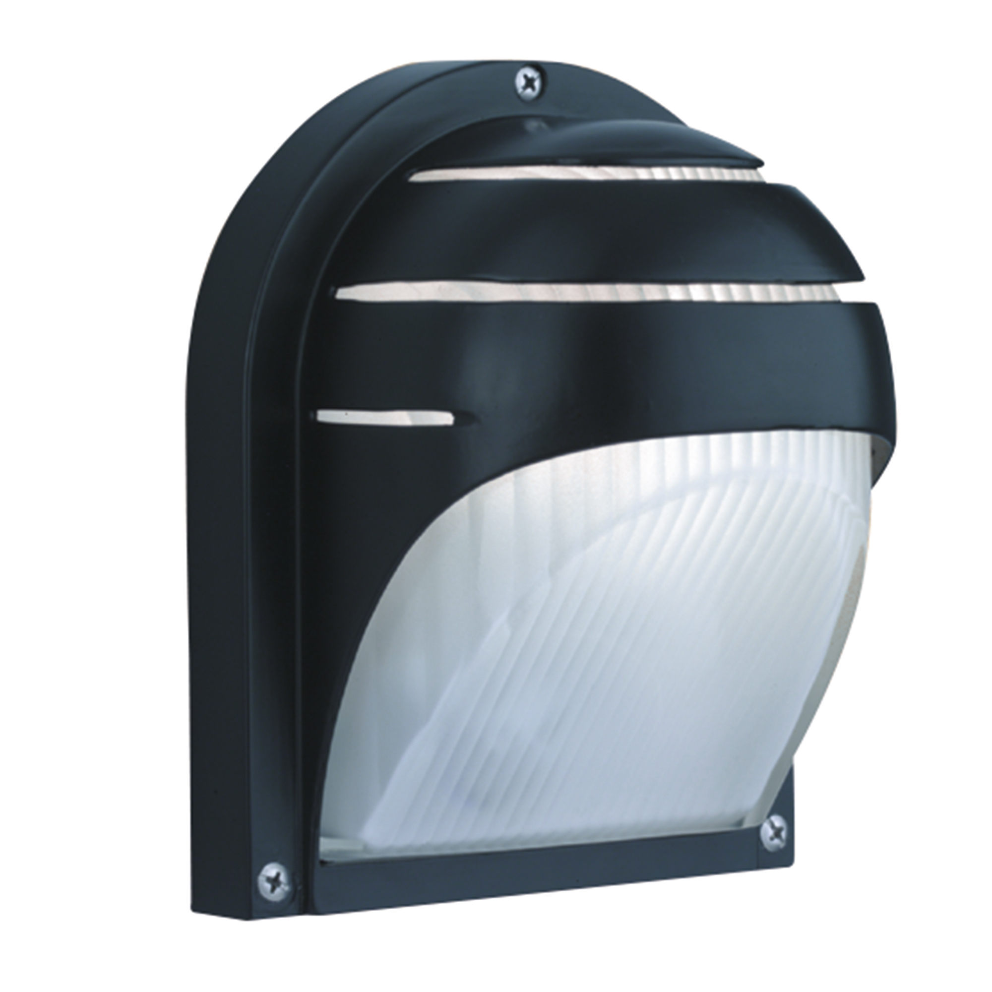 OUTDOOR & PORCH - půlkruh, přisazené svítidlo na stěnu, černé, mražené sklo