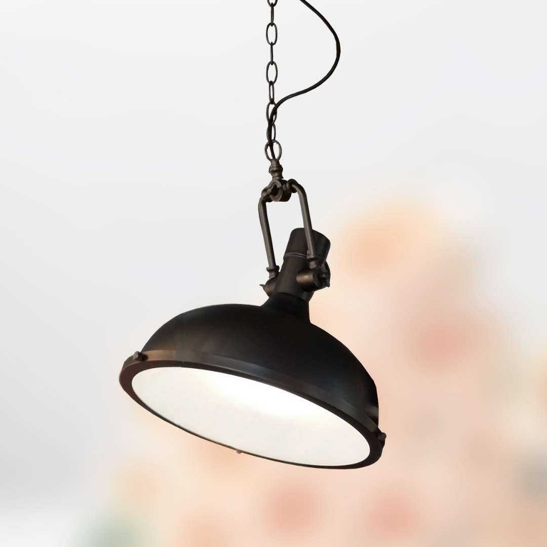 Závěsné svítidlo industriálního stylu o průměru 39cm. Délka se závěsem je 143cm a 1xE27 max.60W