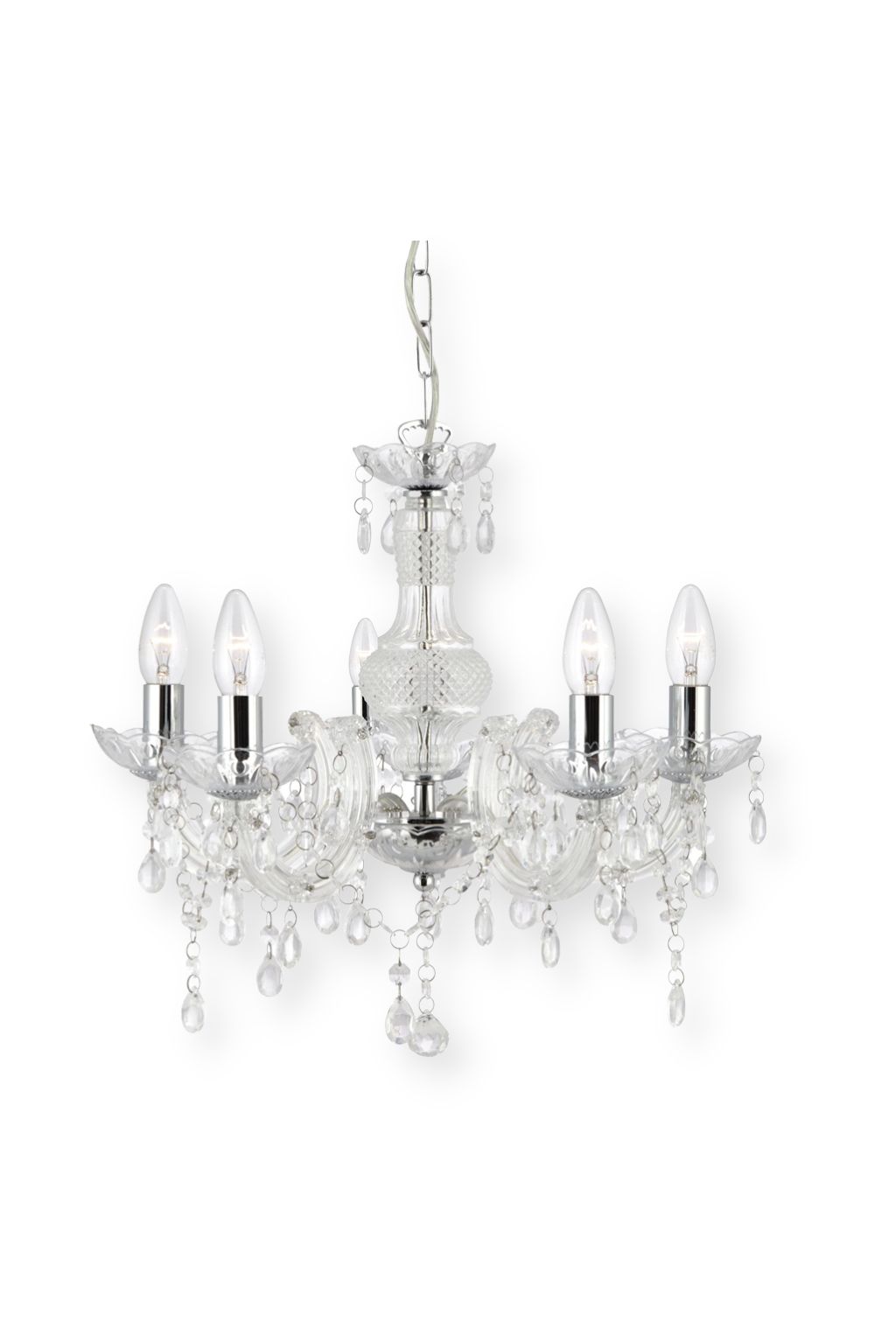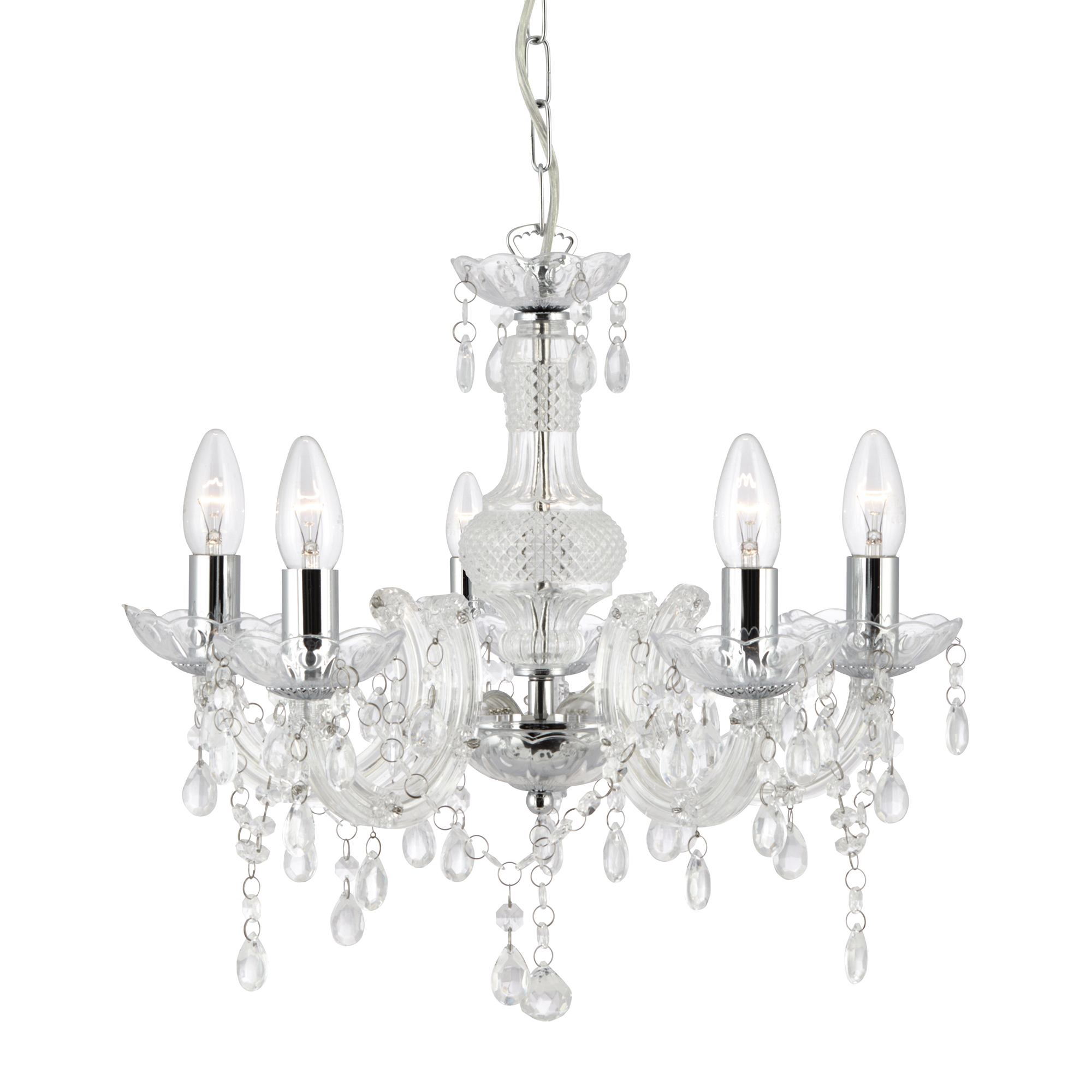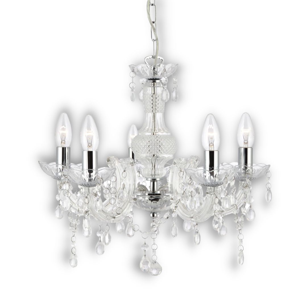 MARIE THERESE - 5x zdroj, závěsné svítidlo, čiré sklo, akryl