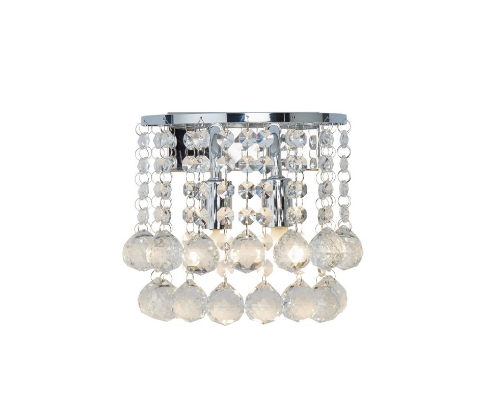 HANNA - 2x zdroj, přisazené svítidlo na stěnu, chrom, čiré křišťálové kuličky