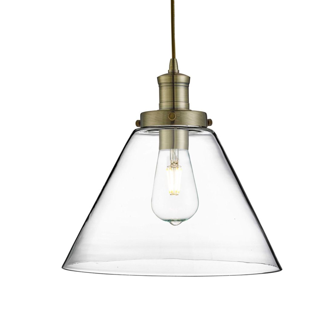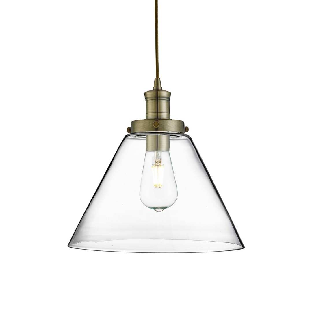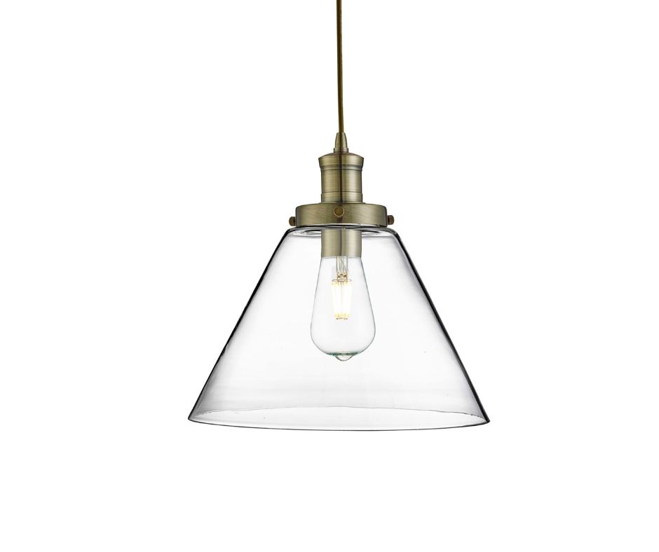 PYRAMID 1x zdroj, závěs, antická mosaz, čiré sklo stínidlo