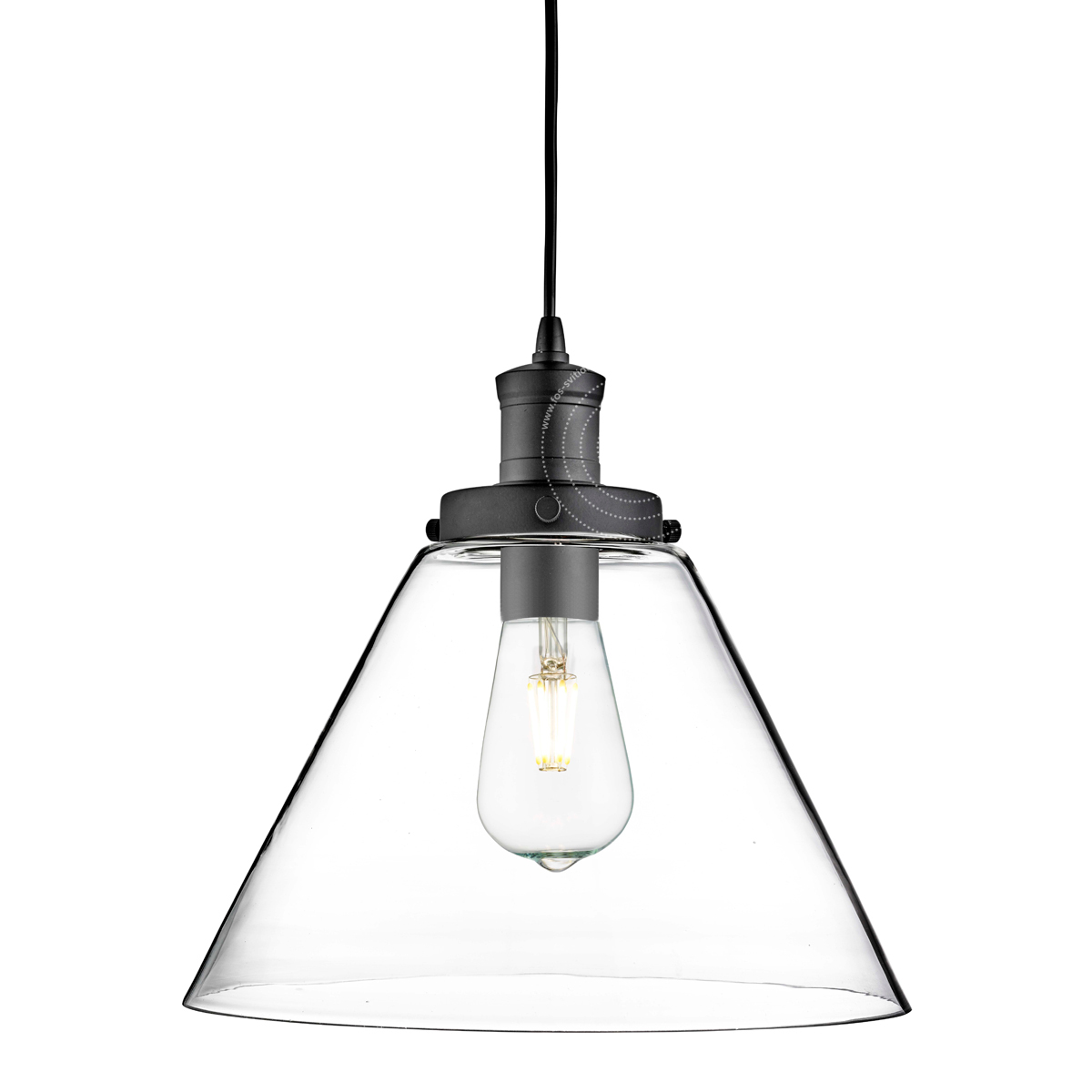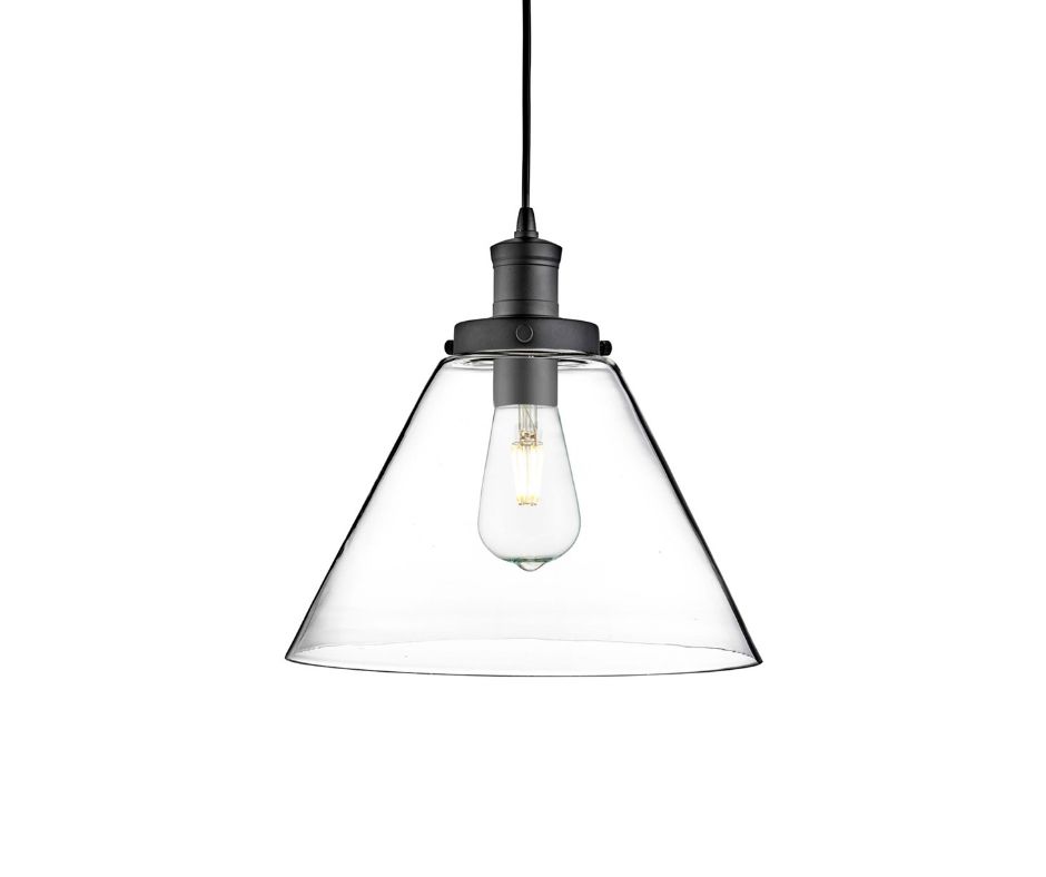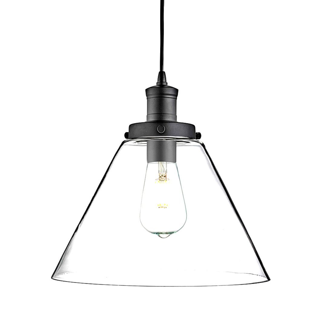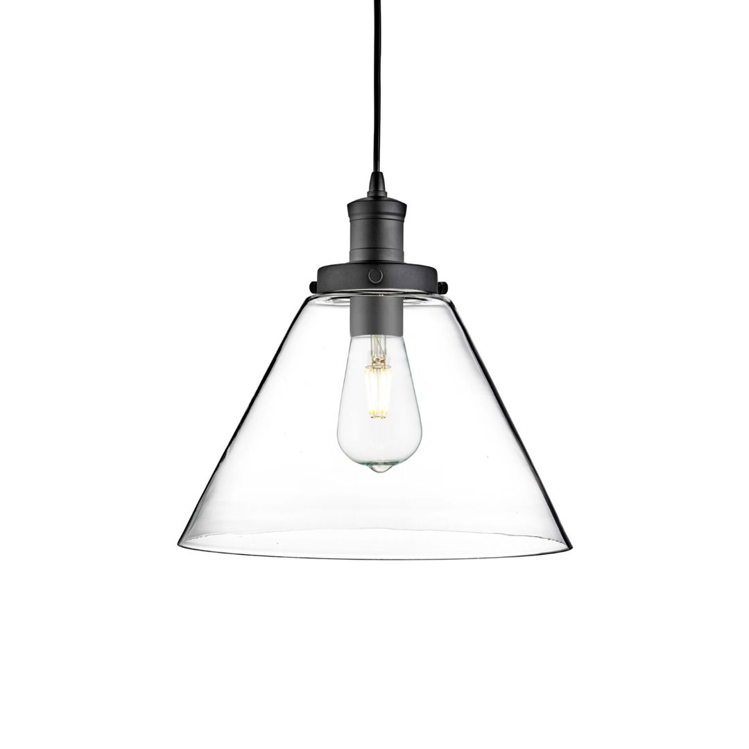 PYRAMID 1x zdroj, závěs, matná černá, čiré sklo stínidlo