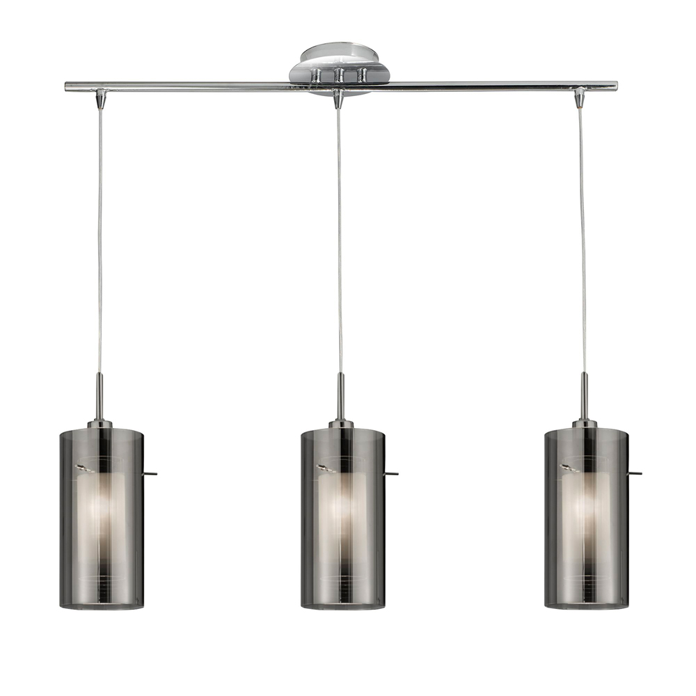 DUO 2 - 3x zdroj, závěsné svítidlo nad jídelní stůl, kouřové vnější/mražené vnitřní sklo stínidla