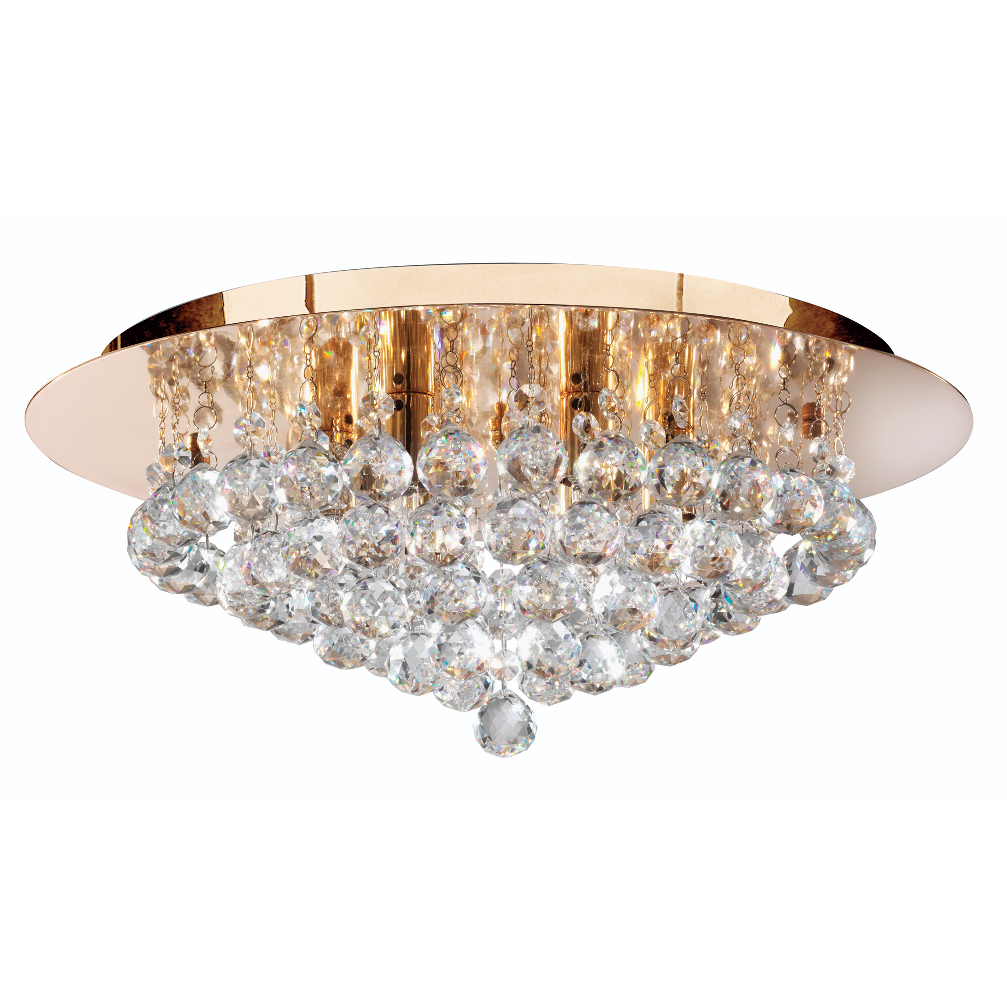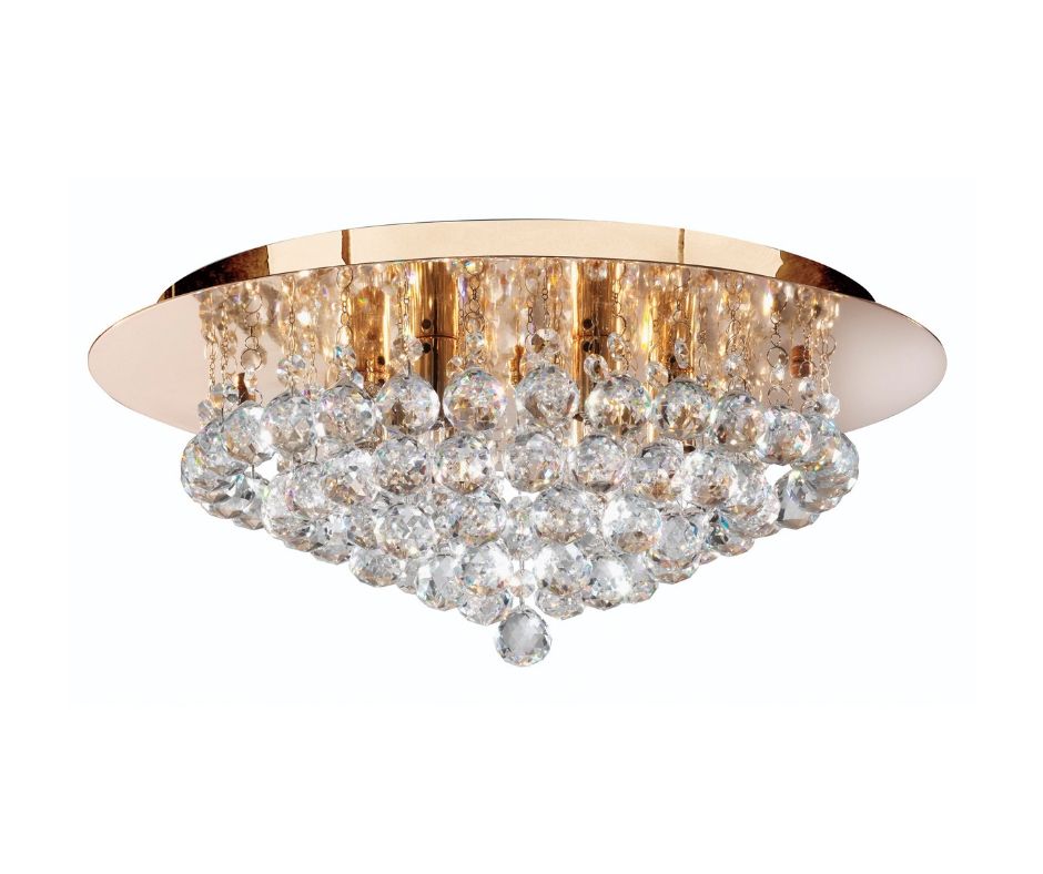 HANNA 6x zdroj, přisazené svítidlo na strop, zlatavé, čiré křišťálové kuličky