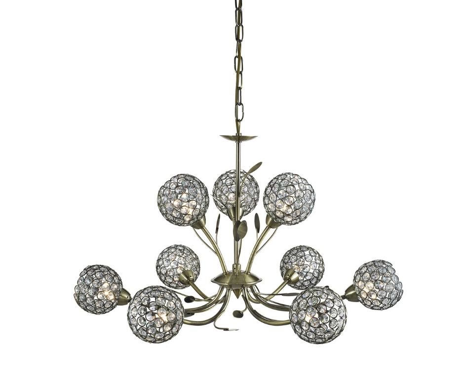BELLIS II - 9x zdroj, závěsné svítidlo, antická mosaz, čiré sklo - dekorativní stínidlo
