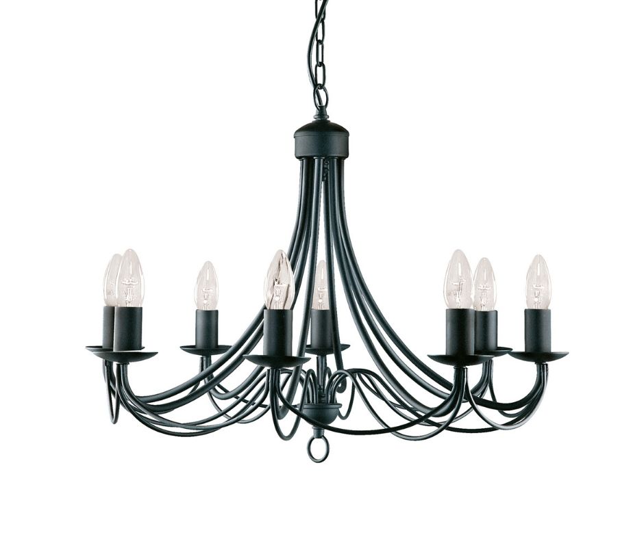 MAYPOLE 8x zdroj, matná černá, závěsné svítidlo