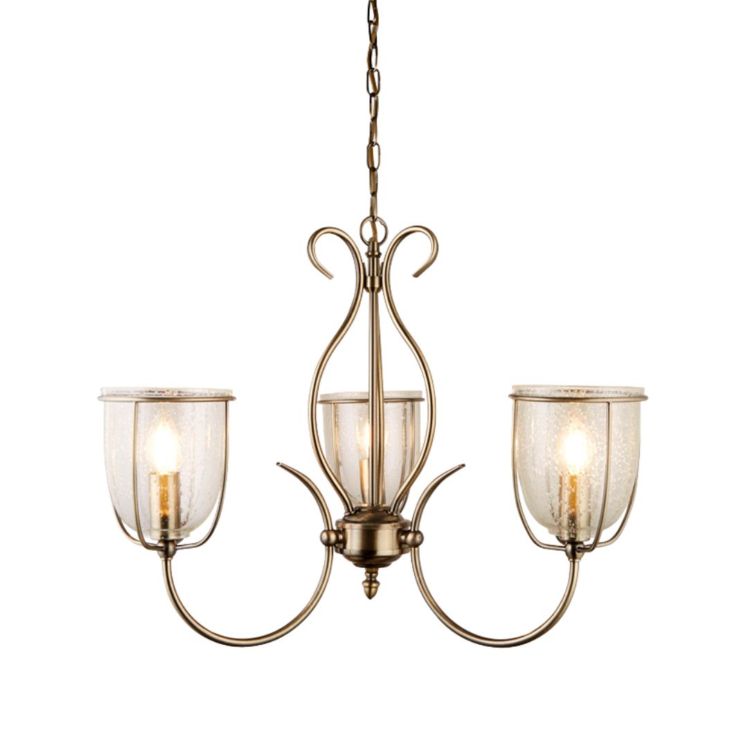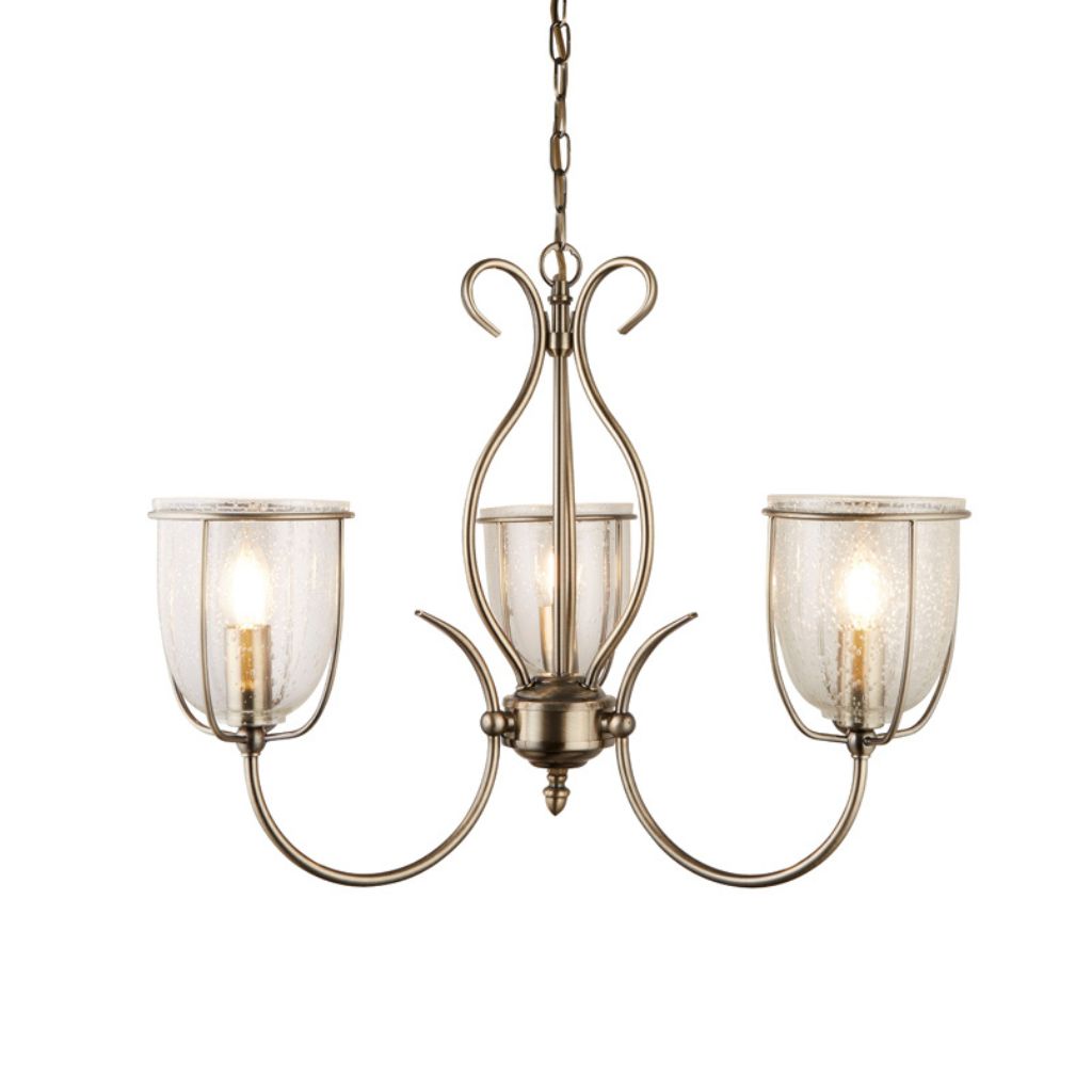 SILHOUETTE 3x zdroj, závěsné svítidlo, antická mosaz a skla s malými bublinkami