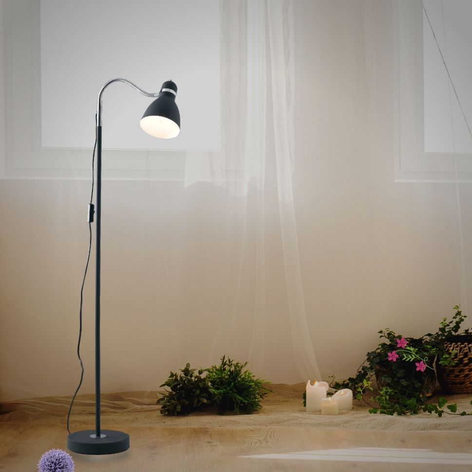 Pěkná a praktická stojací lampa k psacímu stolu nebo ke křeslu na čtení. Výhodou je, že je má vypínač na kabelu a snadno se pohmatem ovládá i při sezení.