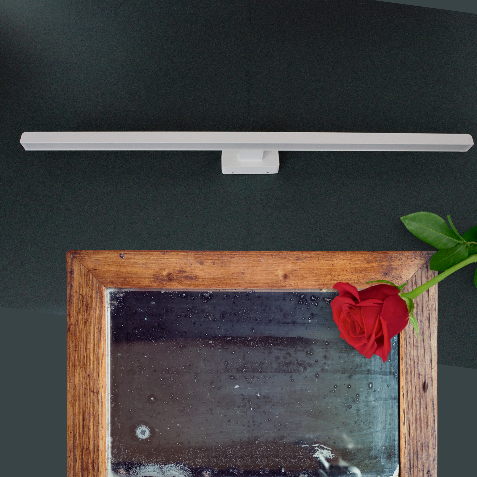 Nástěnné svítidlo nad zrcadlo kov bílá barva, délka 75cm, od stěny 9,5cm, základna je 4x10cm. Integrovaná LED má příkon 15W, trafo je již součást svítidla. Vyzáří 1360lumenů teplým bílým světlem 3000K.