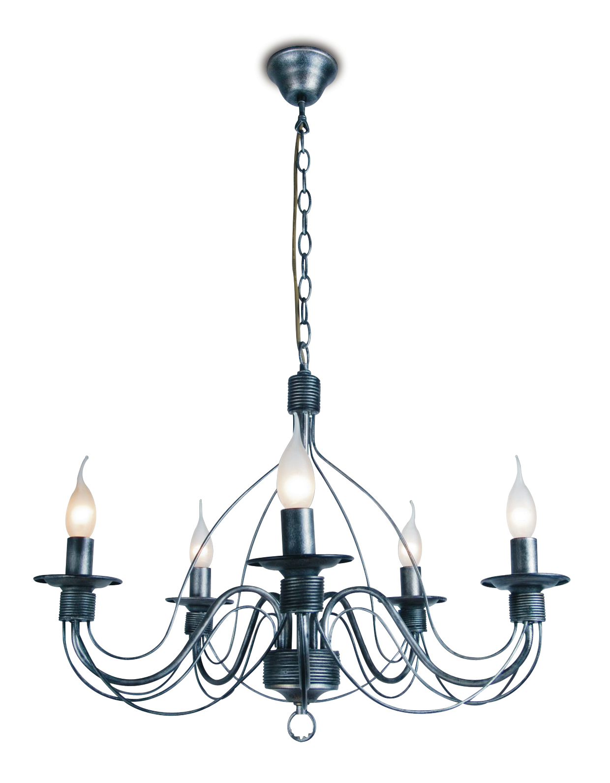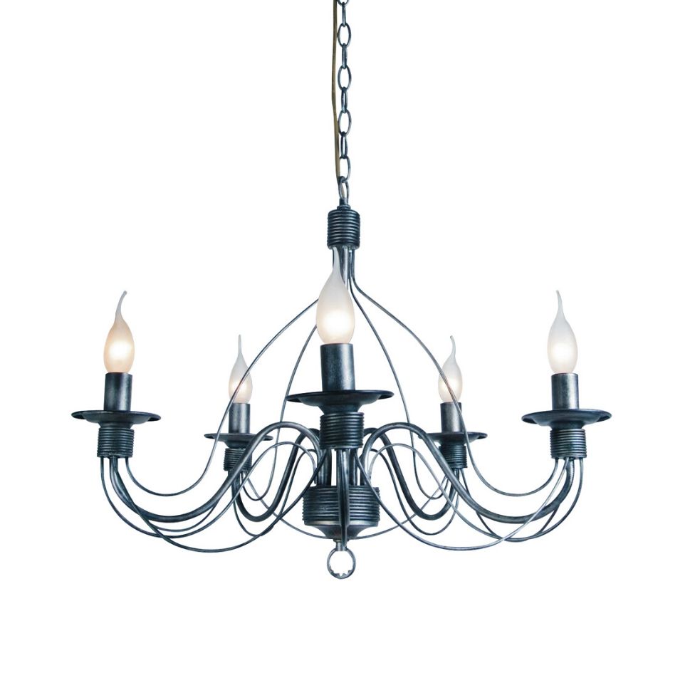 Svítidlo má velmi pěkně tvarovaná kovová ramena upravena barvou a jsou doplněna omotávanými drátky na ramenech pod svíčkami. Krásné linie celého závěsu umocněné kovářskou černou jsou elegantní a také výrazné. Celý dojem ze svítidla dotvoří správný zdroj světla nejlépe typ filament a to ve tvaru svíčky nebo plamínku.