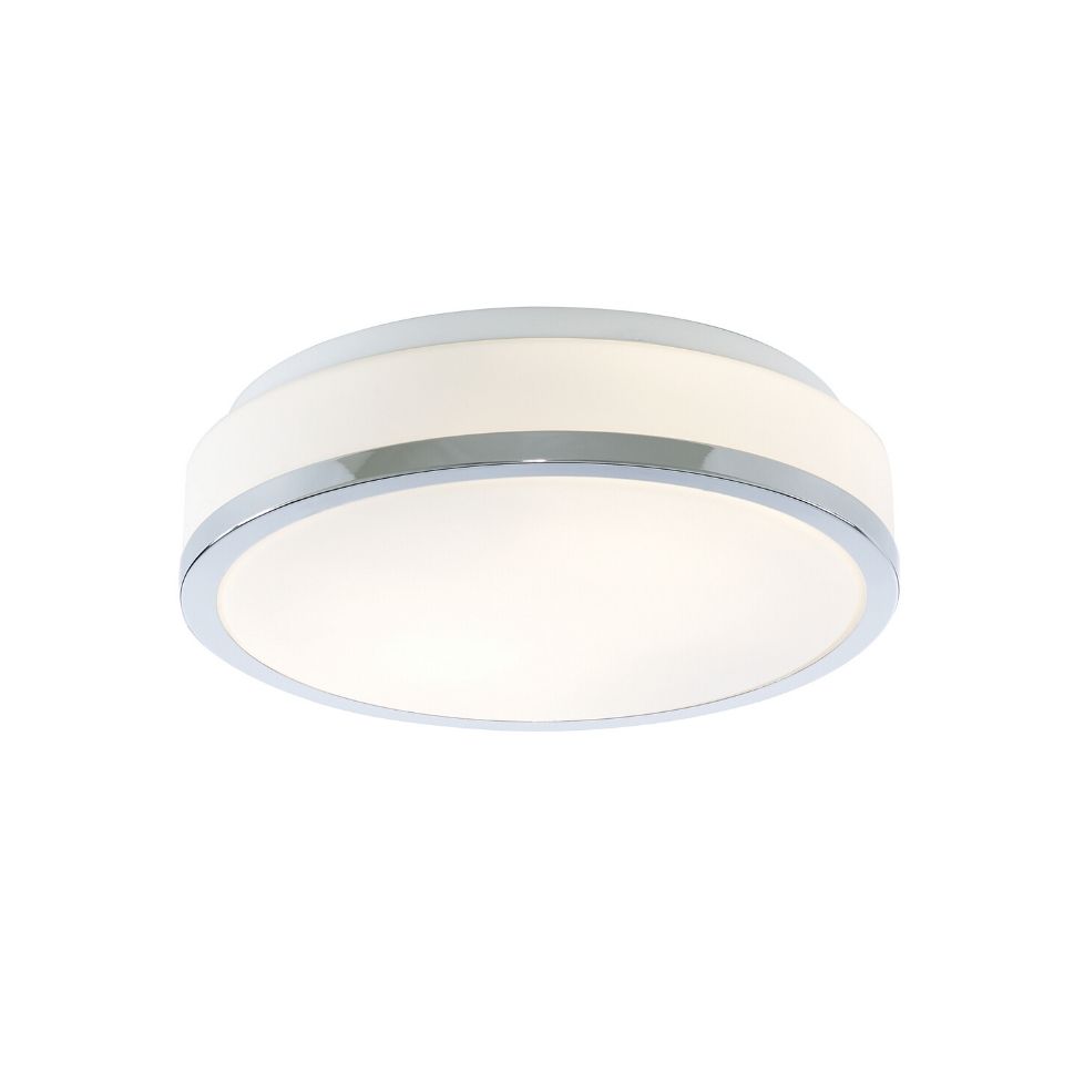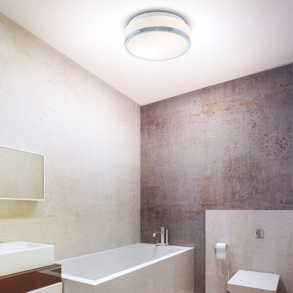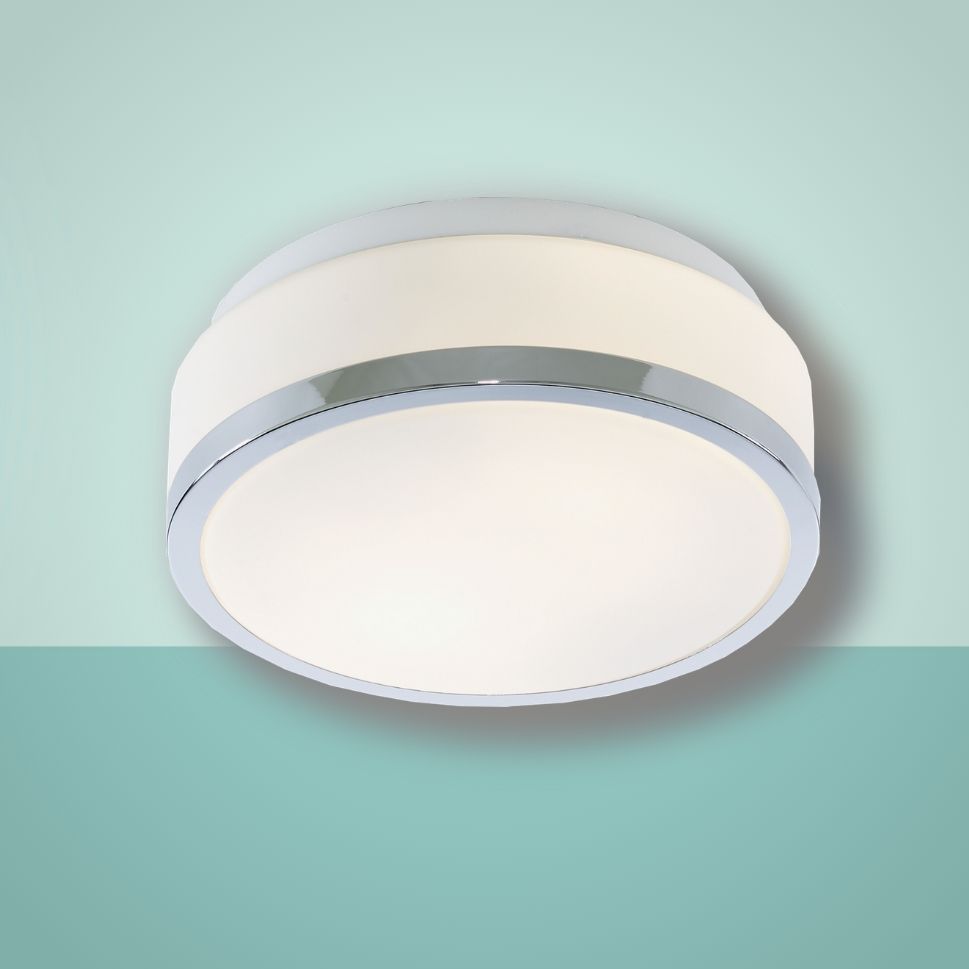Klasická stropnice o průměru 23cm s opálovým sklem a chromovým proužkem vhodná do koupelny nebo hůře dostupná místa v domě.