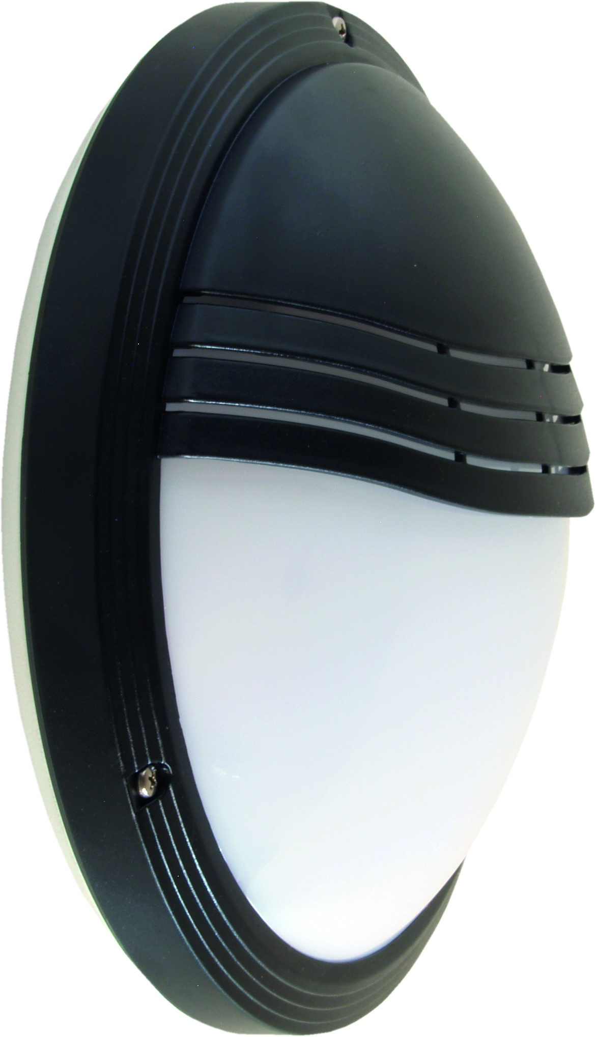 • Přisazené, venkovní, stropní nebo nástěnné svítidlo s plastovým kulatým stínítkem a černým rámečkem a clonou