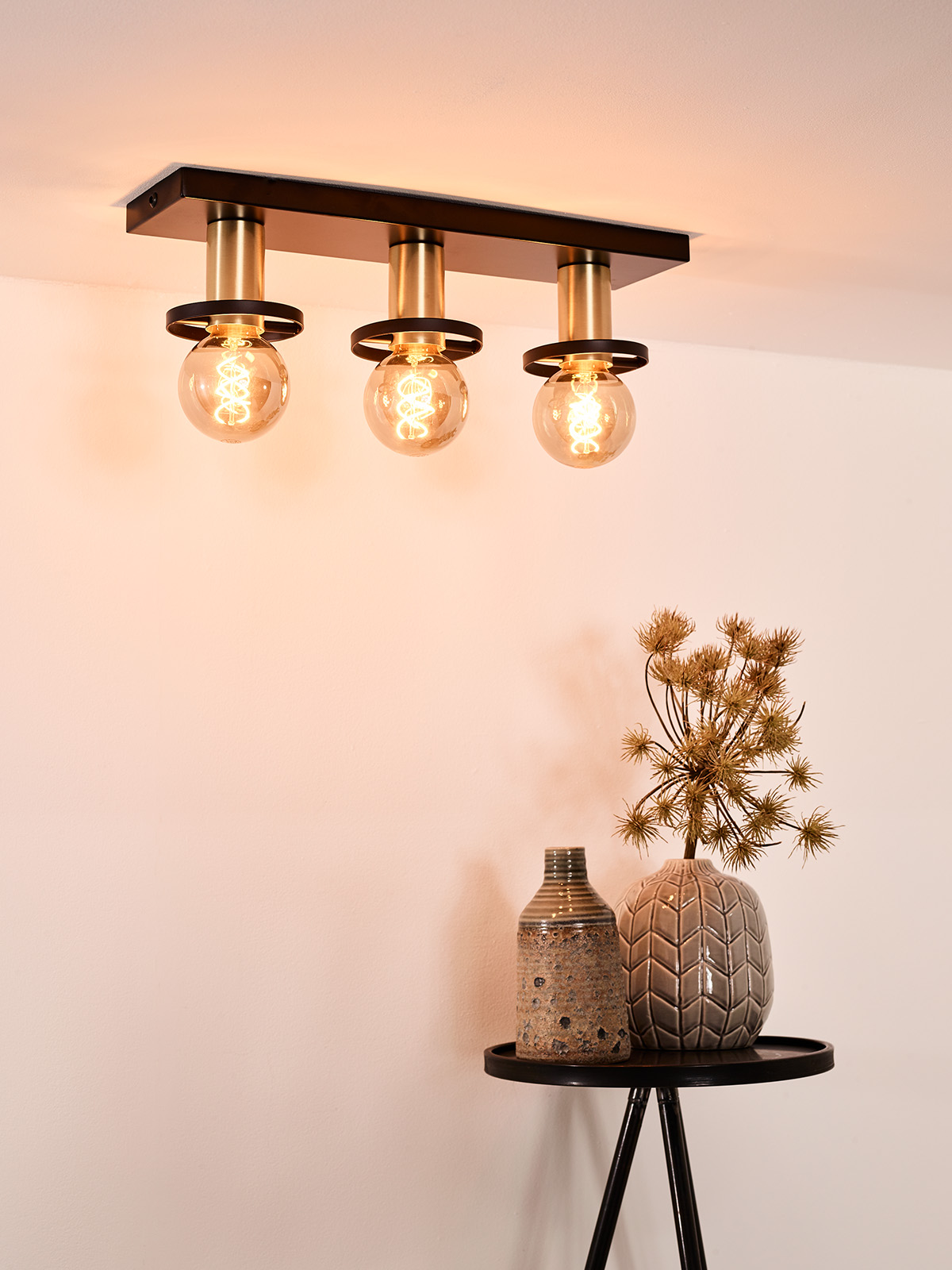 LUCIDE ANAKA Ceiling light 3x E27/40W Black/Satin Brass