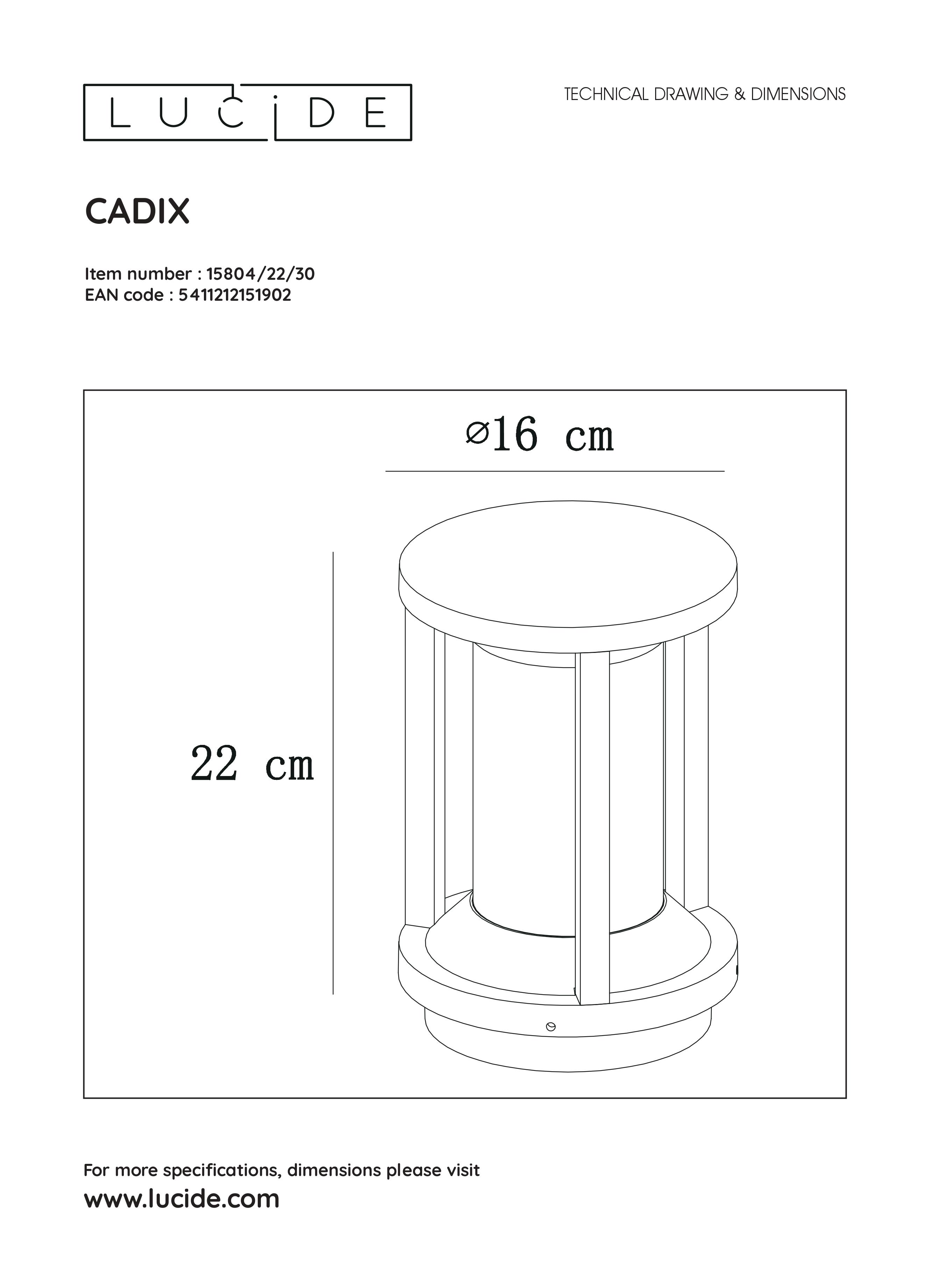 LUCIDE CADIX Outdoor Base lamp 22cm E27/max 15W led Black venkovní svítidlo