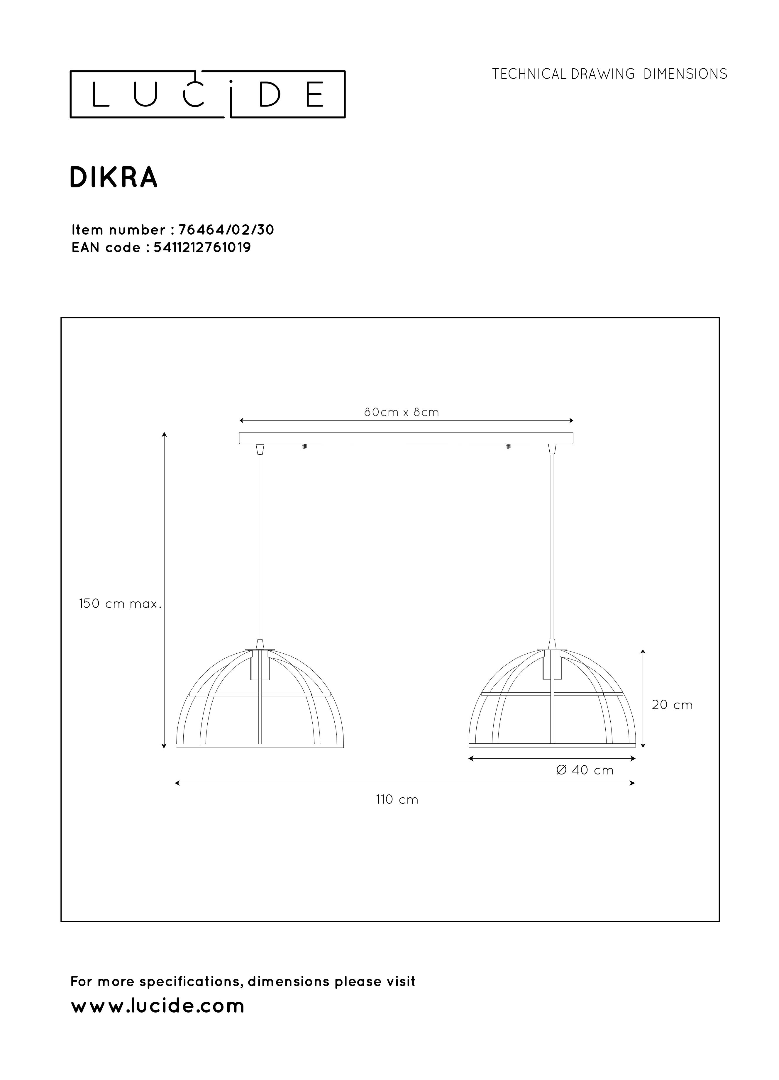 LUCIDE DIKRA Pendant 2xE27 60W  Black závěsné svítidlo, lustr