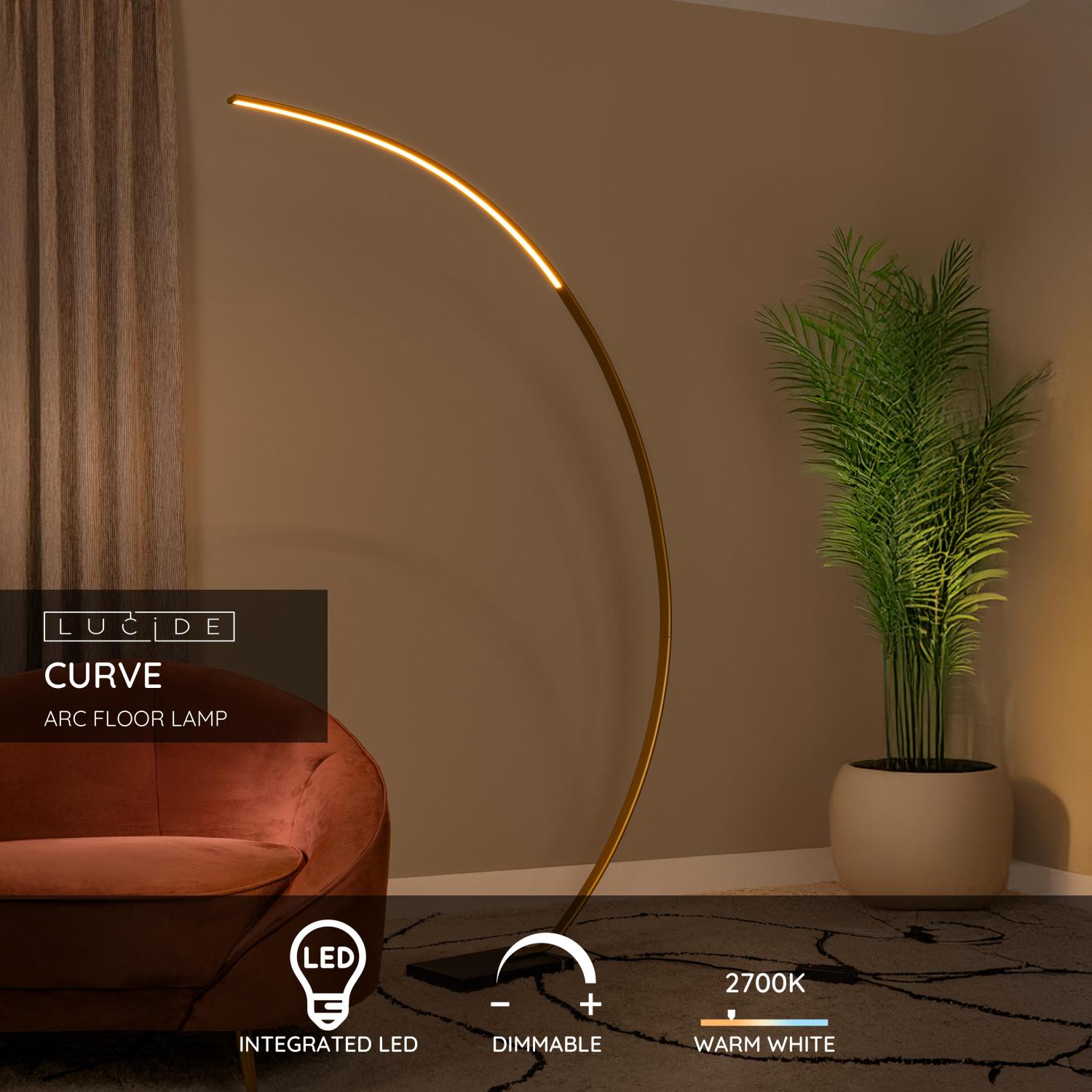 LUCIDE Lucide CURVE - Arc floor lamp - LED Dim. - Matt Gold / Brass stojací lampa