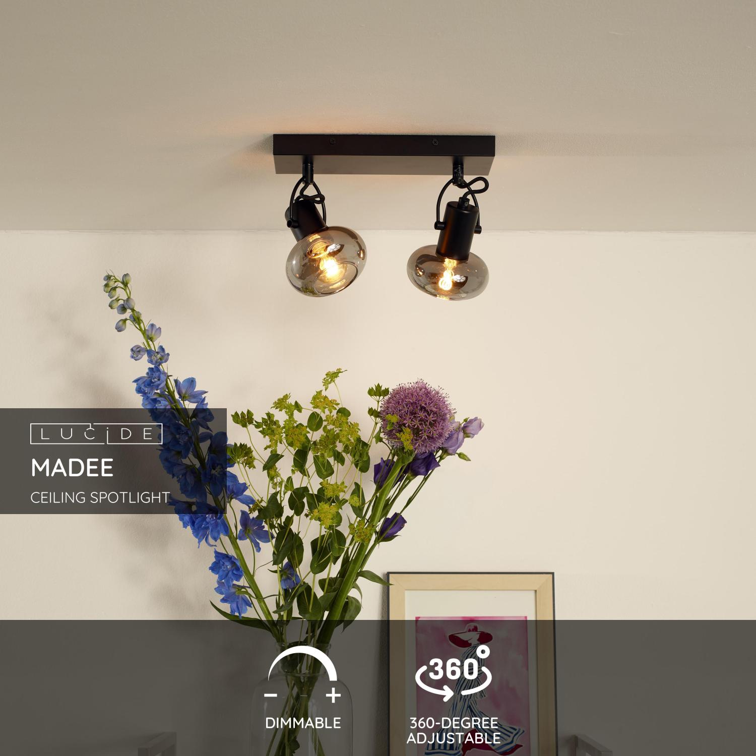 LUCIDE MADEE Ceiling spotlight  2x E14/25W Back/Smoke gla bodové svítidlo, bodovka