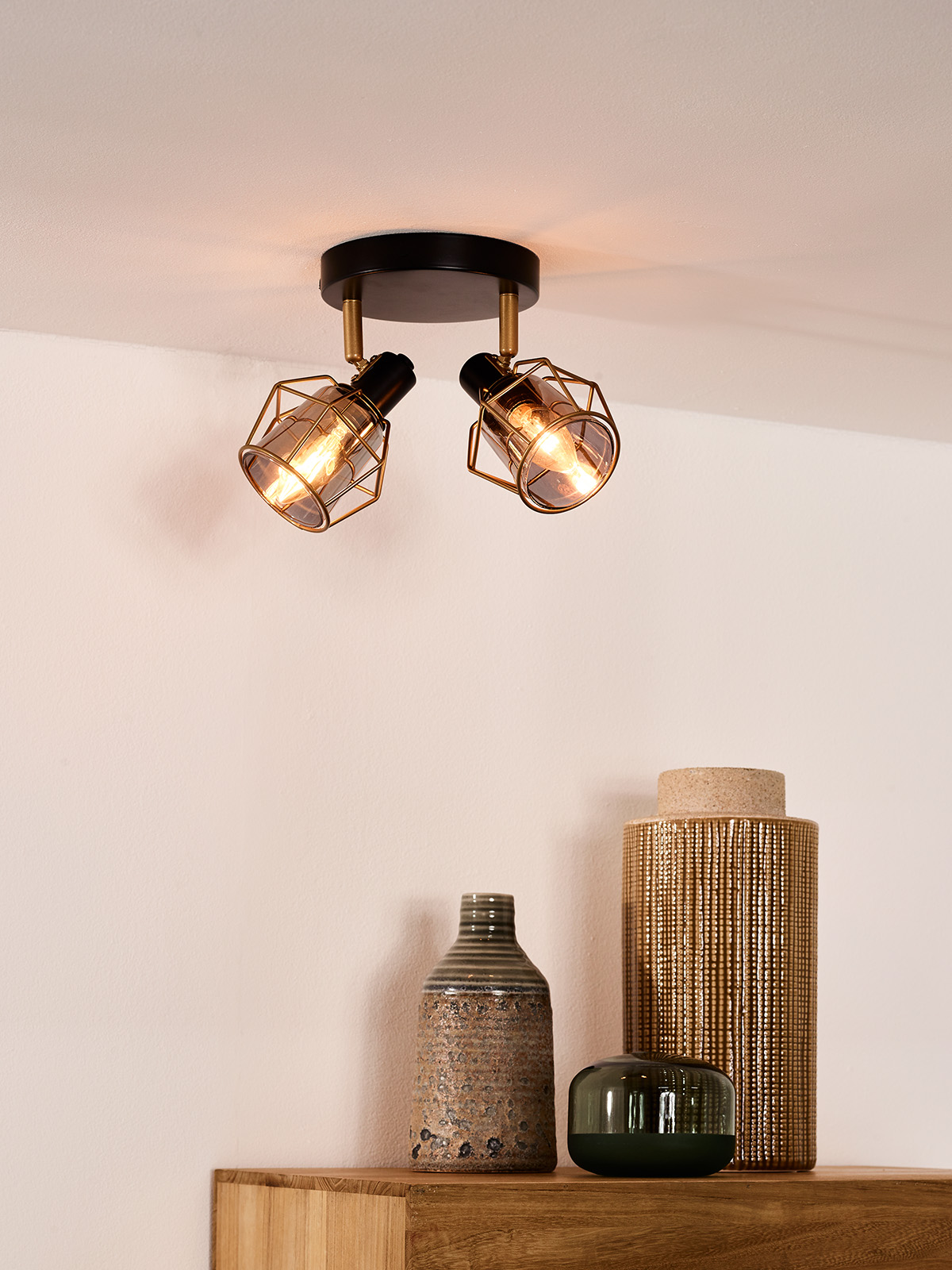 LUCIDE NILA Ceiling spotlight 2x E14/25W Black/Smoke glas bodové svítidlo, bodovka