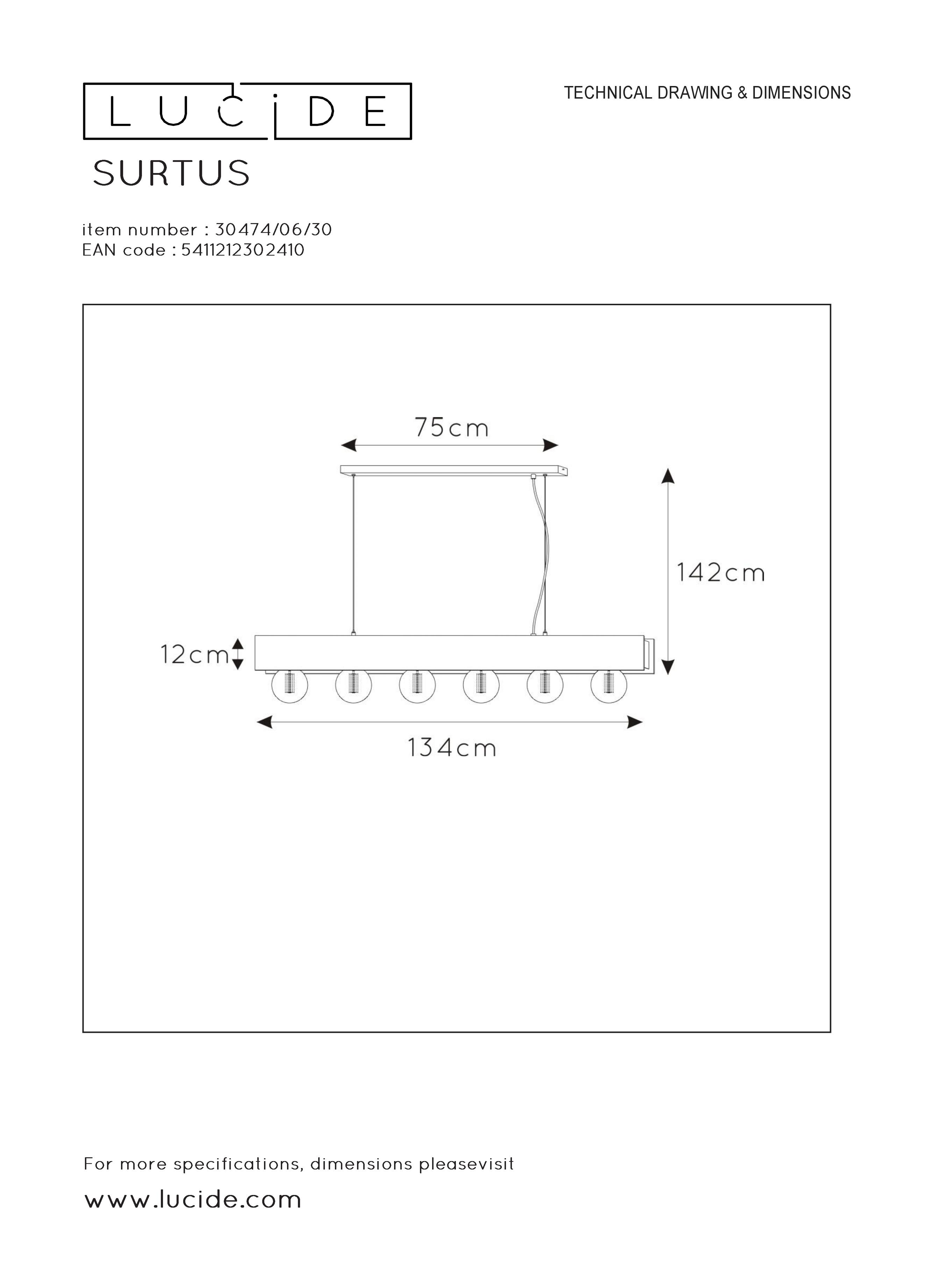LUCIDE SURTUS Pendant 6xE27/60W Black závěsné svítidlo, lustr