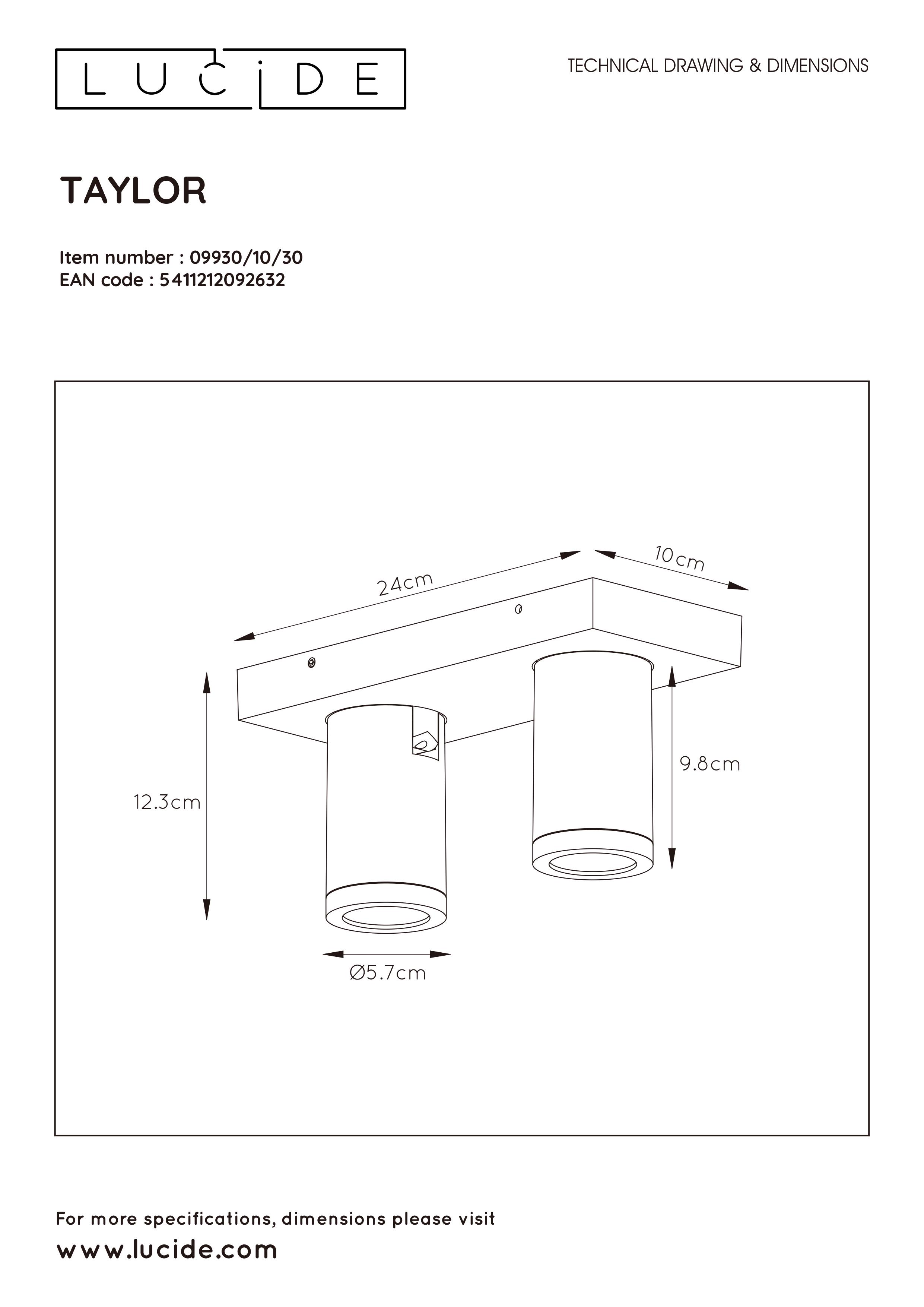 LUCIDE TAYLOR Ceiling Spotlight 2x GU10/5W IP44 DTW Blac bodové svítidlo, bodovka