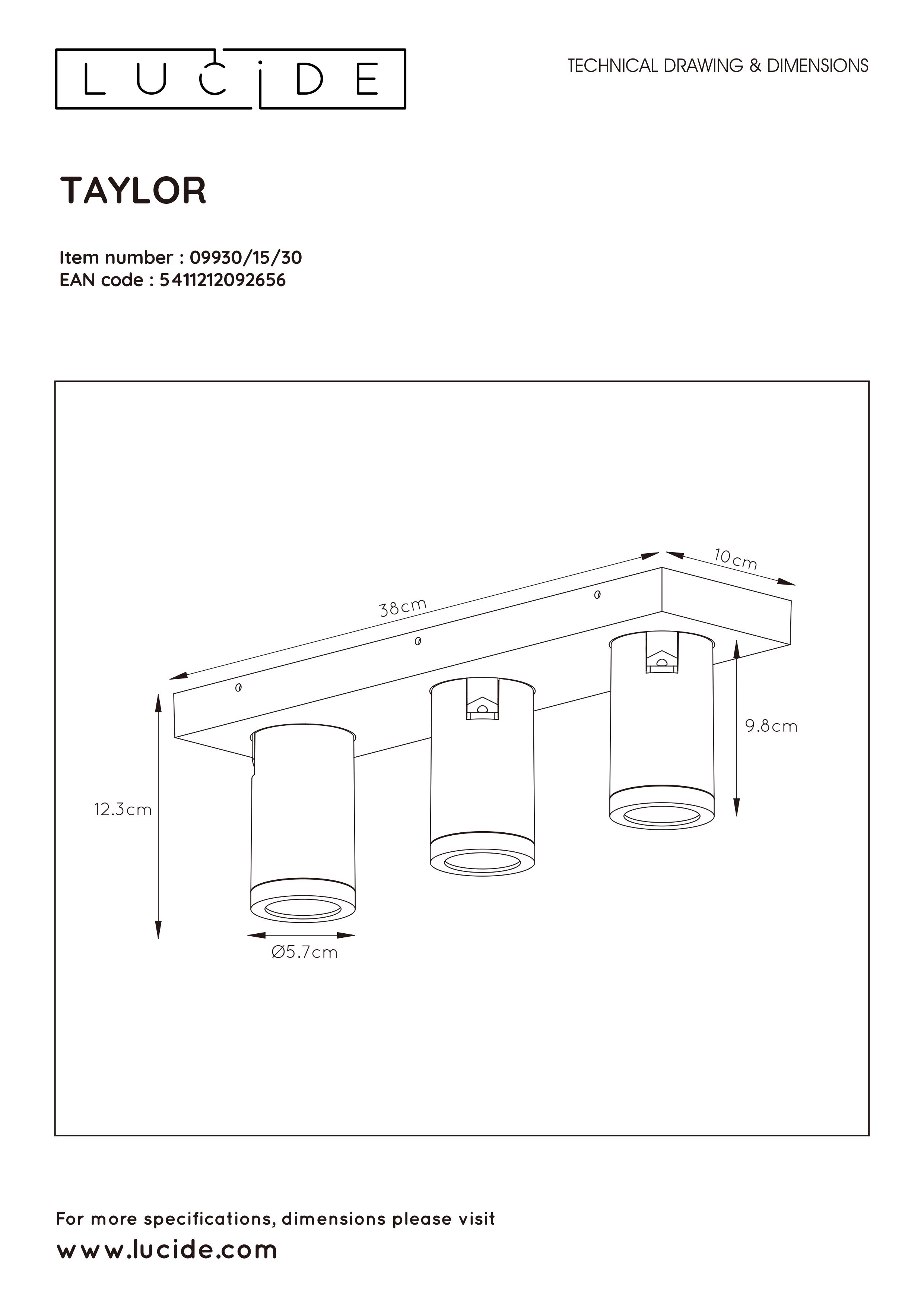 LUCIDE TAYLOR Ceiling Spotlight 3x GU10/5W IP44 DTW Blac bodové svítidlo, bodovka