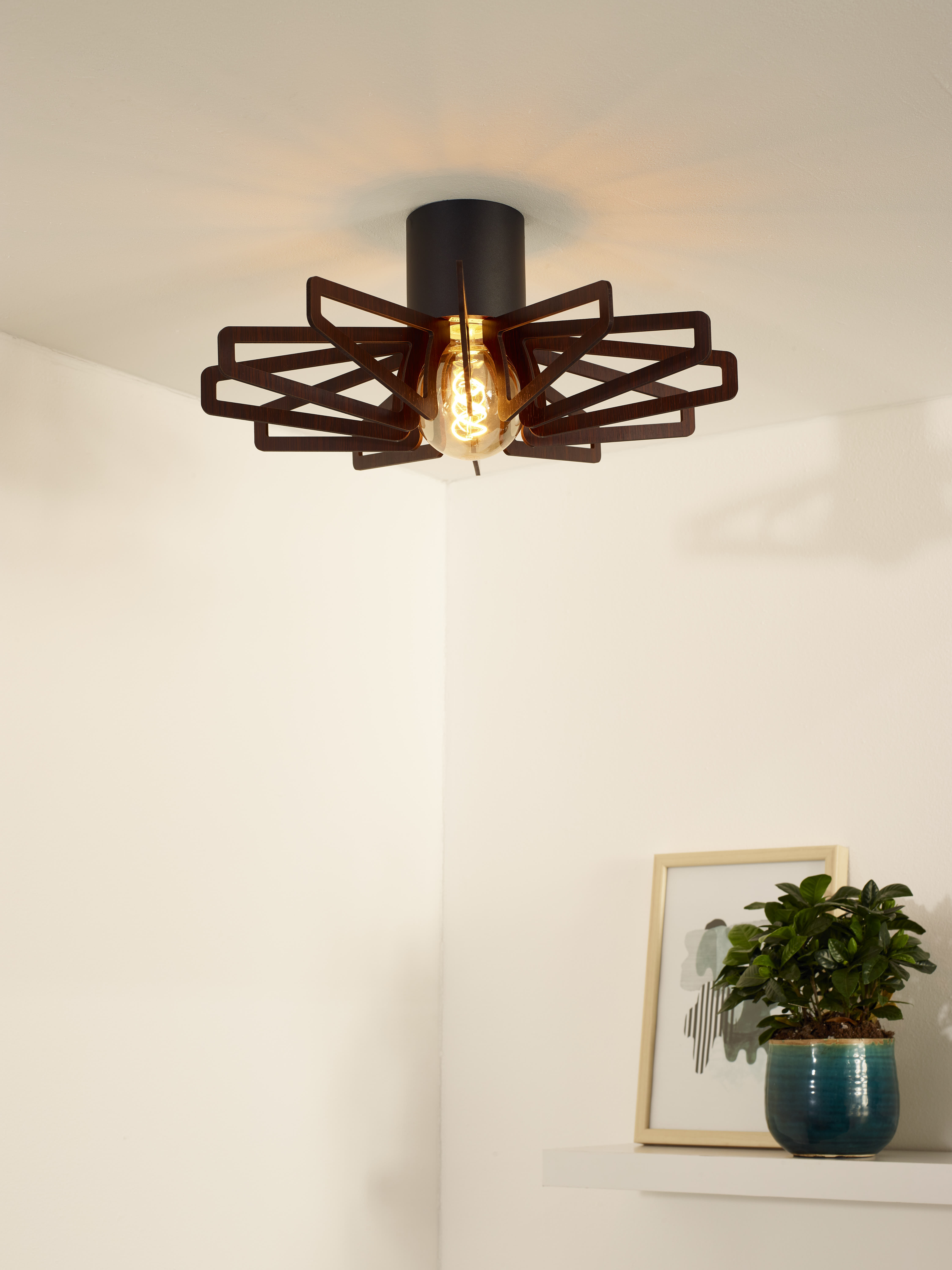LUCIDE ZIDANE Ceiling light E27/15W Black/Dark wood