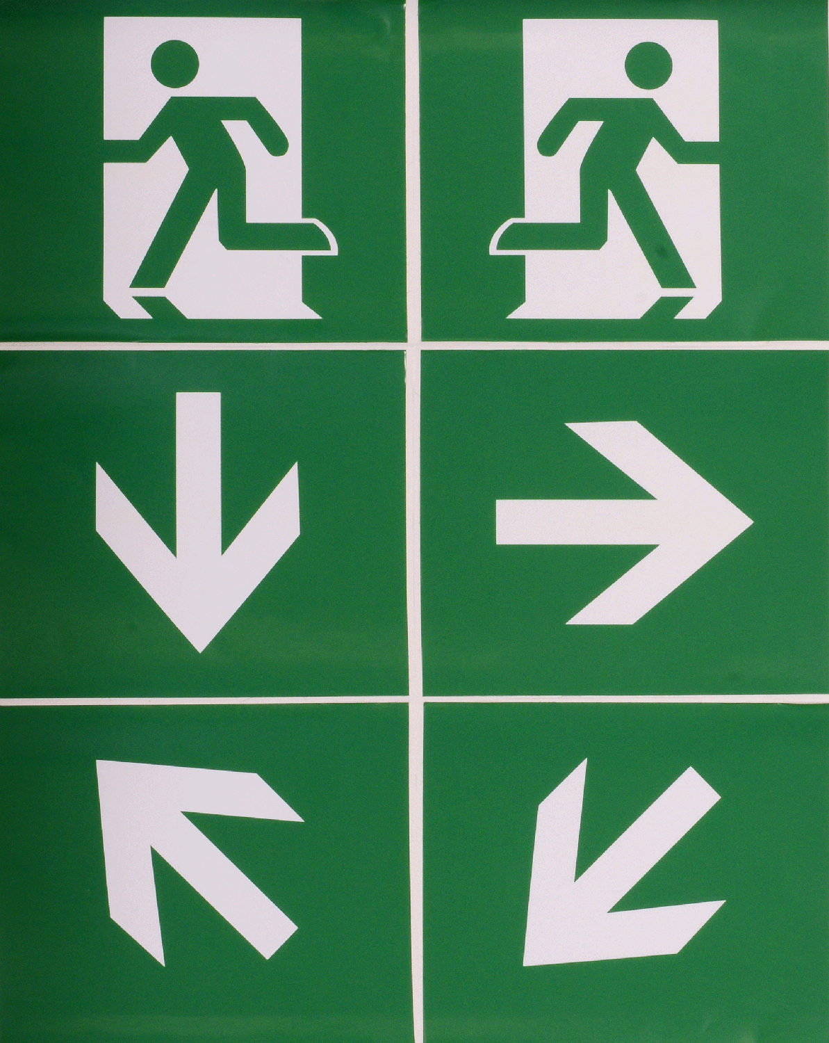 Součástí balení jsou i samolepky s obrázky vyznačení únikových cest tzv. piktogramy.