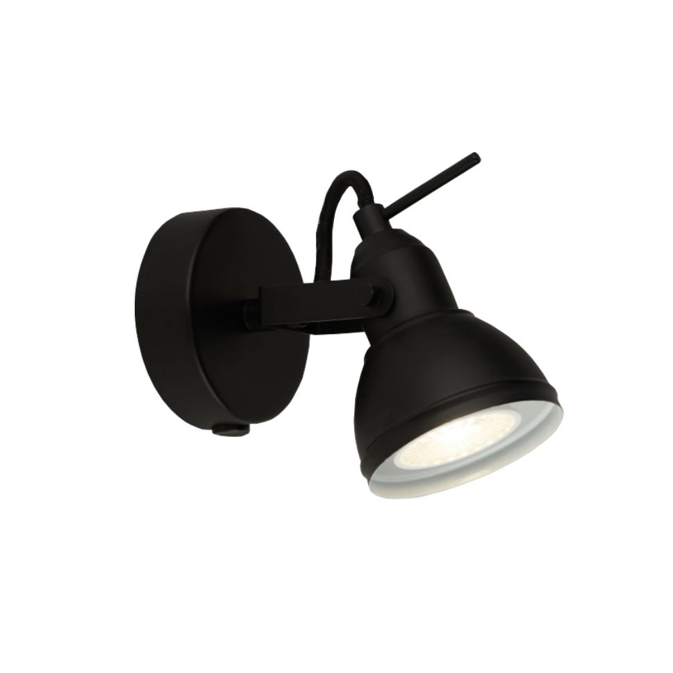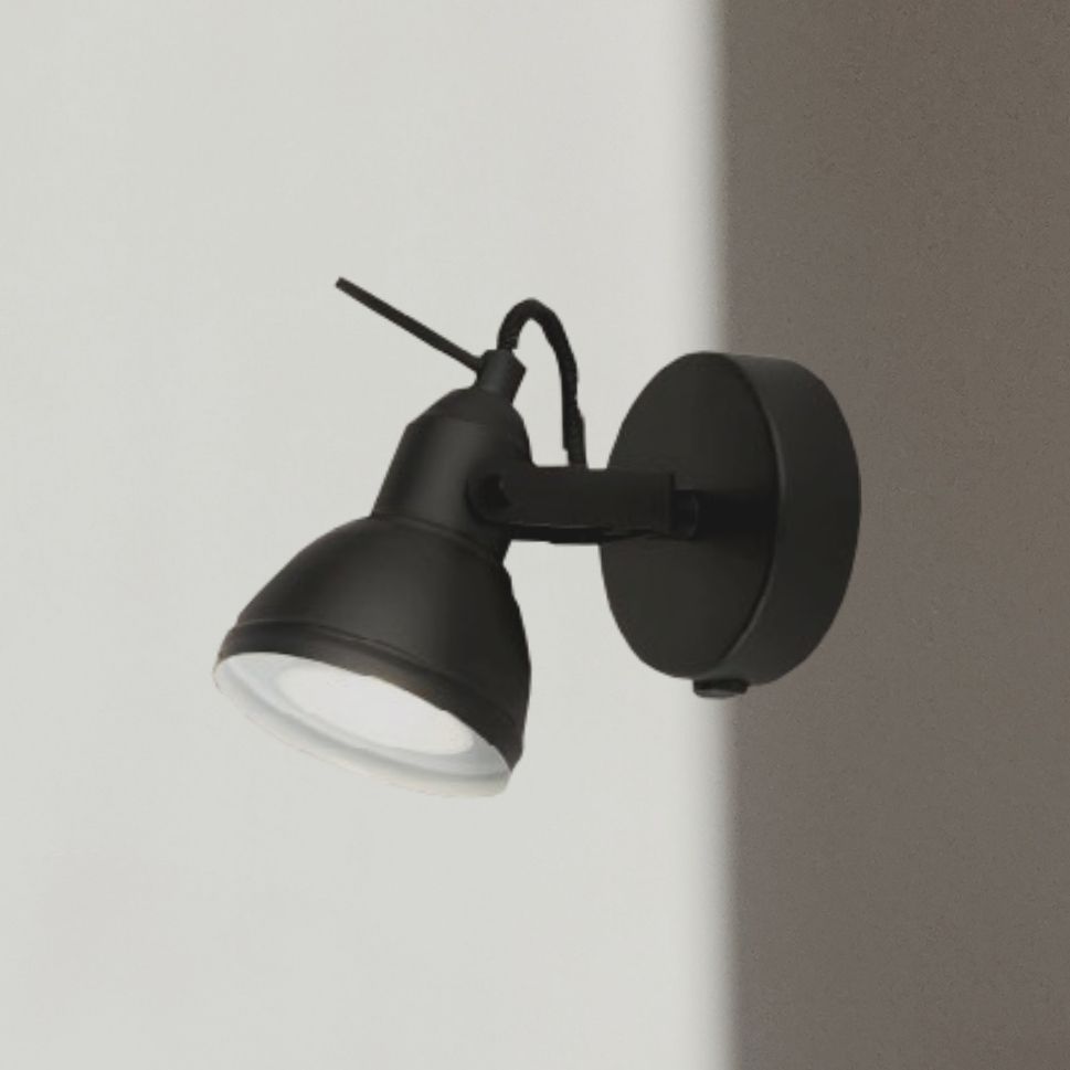 Bodové svítidlo kov černá barva s vypínačem. Od stěny 17cm a průměr 9cm. Patice pro zdroj GU10 na max. 1x35W. Žárovka není součást balení. Bodovka je z kolekce Focus od výrobce svítidel Searchlight.