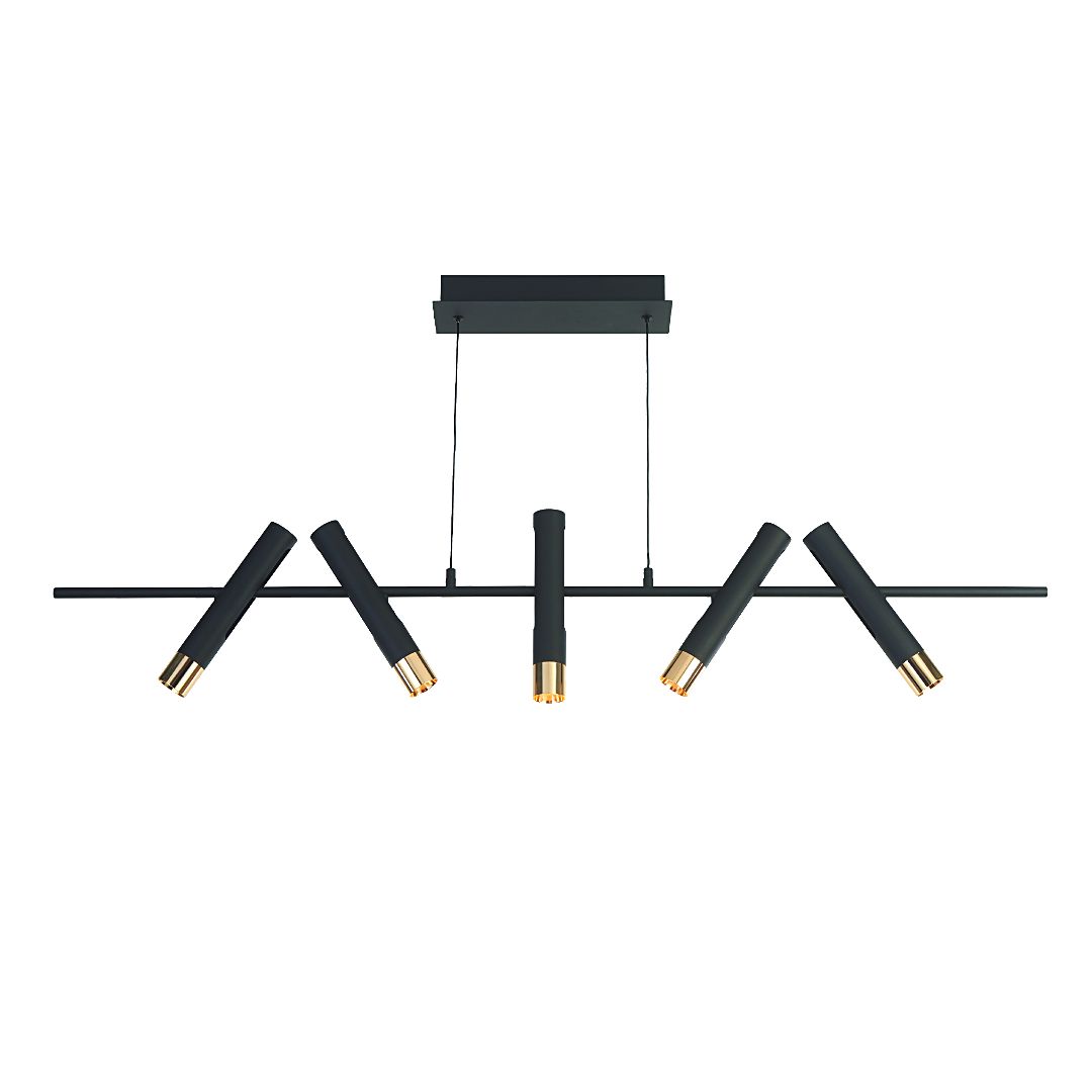 Svítidlo jako závěsné nad stůl v matné černé barvě v podlouhlém tvaru, skvělé pro moderní styl.