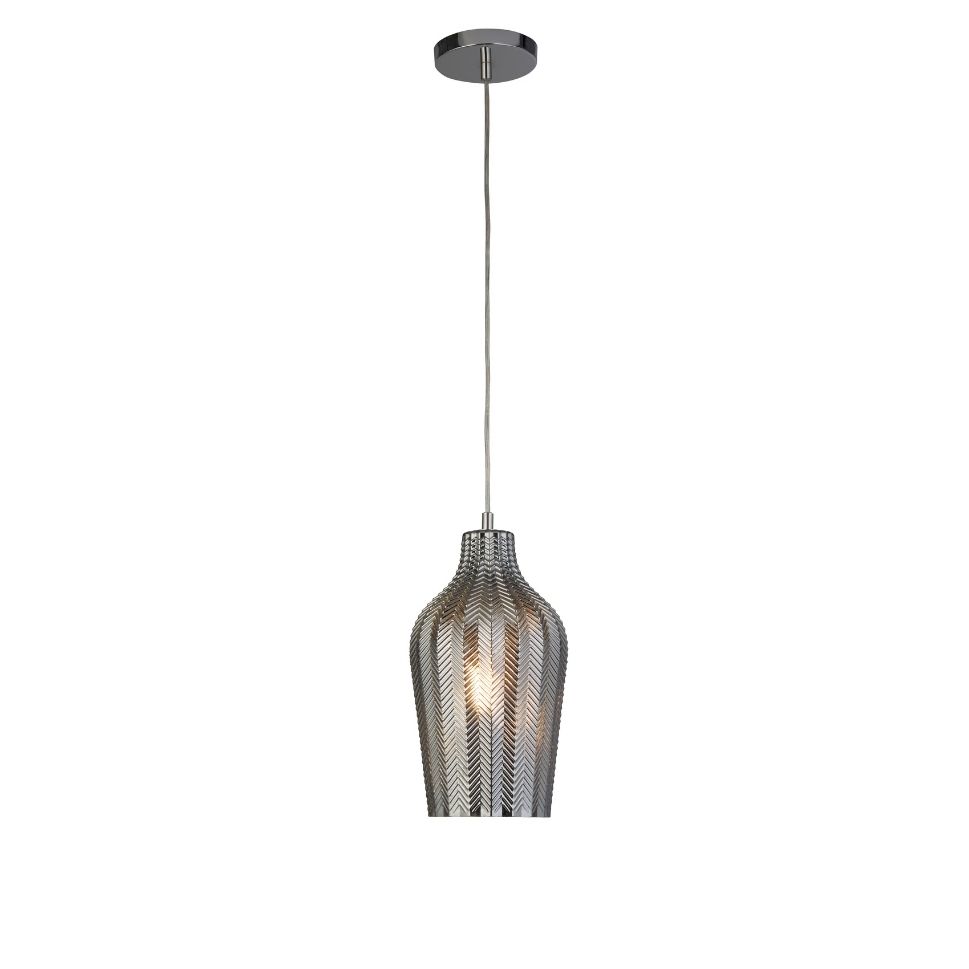 Závěsné svítidlo ze skla kouřové barvy. Od stropu 145cm a průměr stínidla 17,5cm. Patice žárovky je E27 na max. 1x40W. Žárovka není v balení. Závěsné světlo je z kolekce Chevron od výrobce svítidel Searchlight.