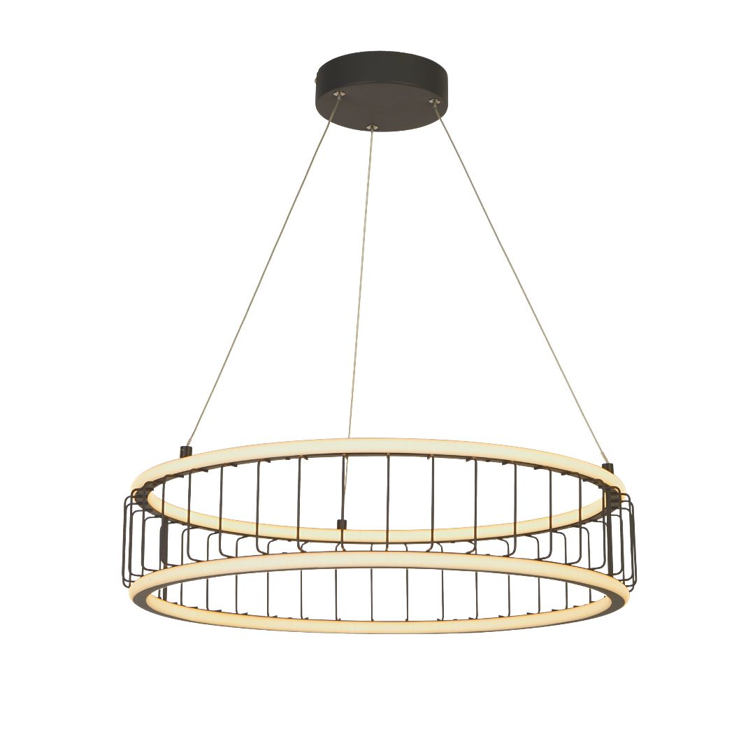 Svítidlo závěsné na strop v matné černé barvě s drátěnými detaily. Působivý design svítidla s integrovaným LED zdrojem.