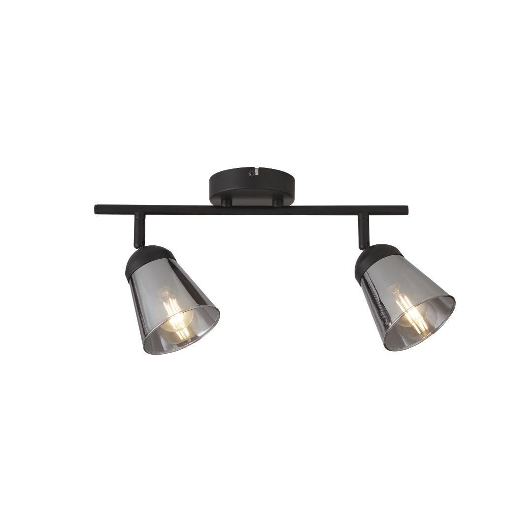Stropní svítidlo na dvě žárovky. Působivé svítidlo s kouřovým skleněným stínidlem čistého designu.