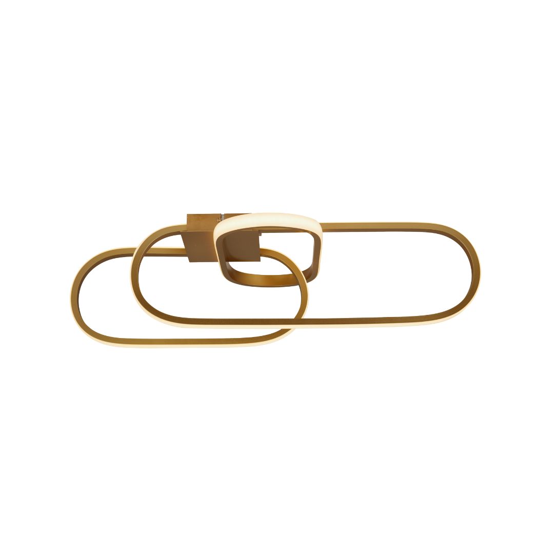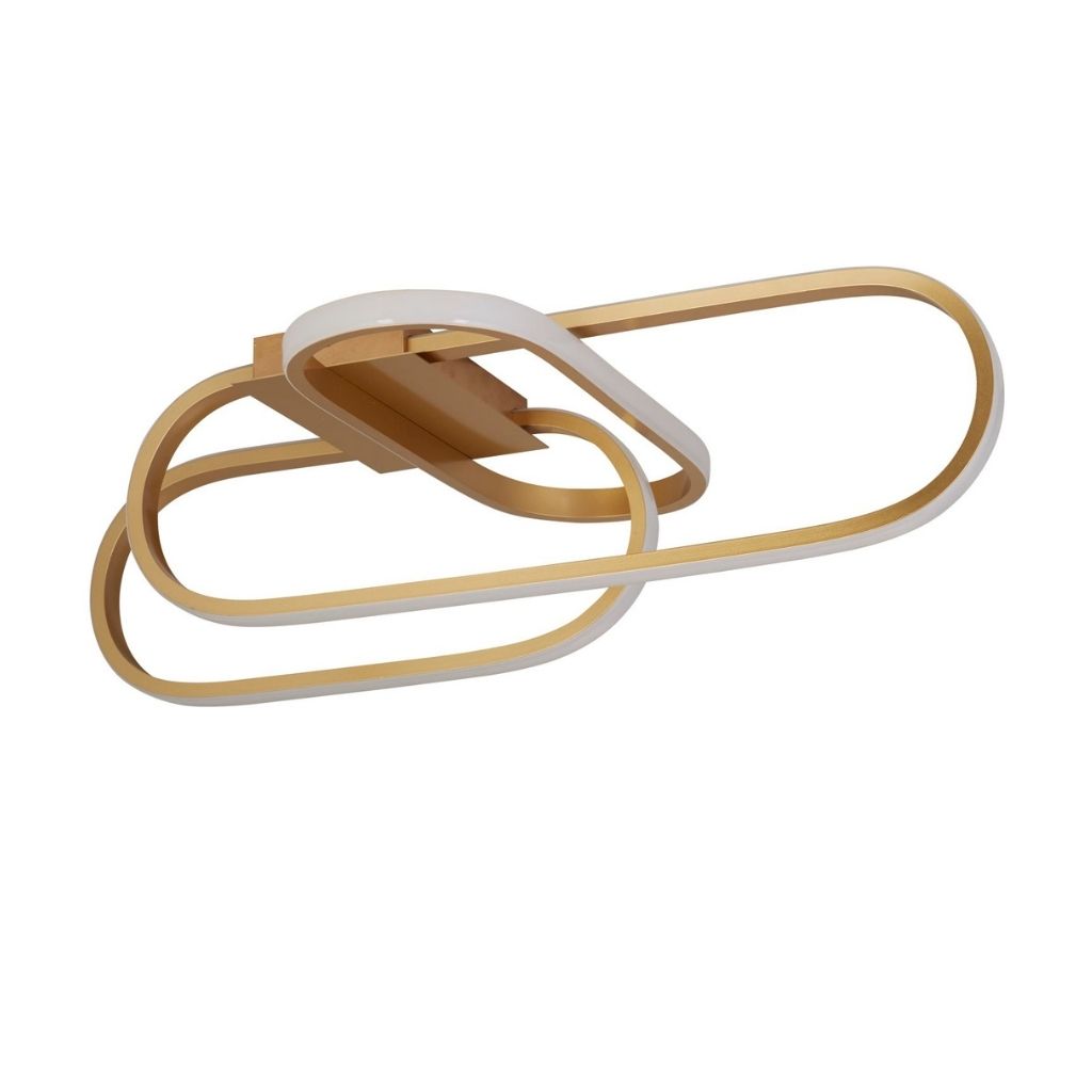 Svítidlo přisazené na strop v matné zlaté barvě. Působivý moderní design svítidla s integrovaným LED zdrojem.