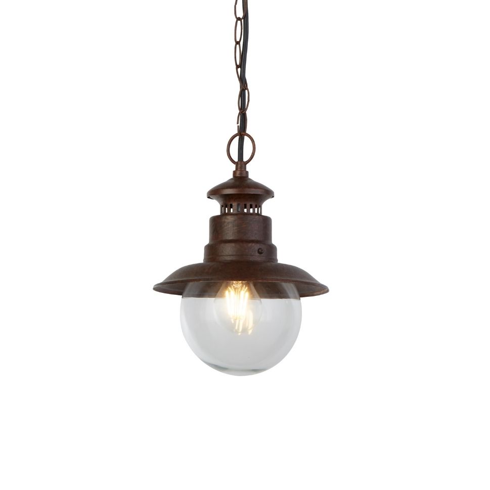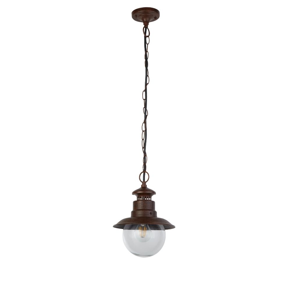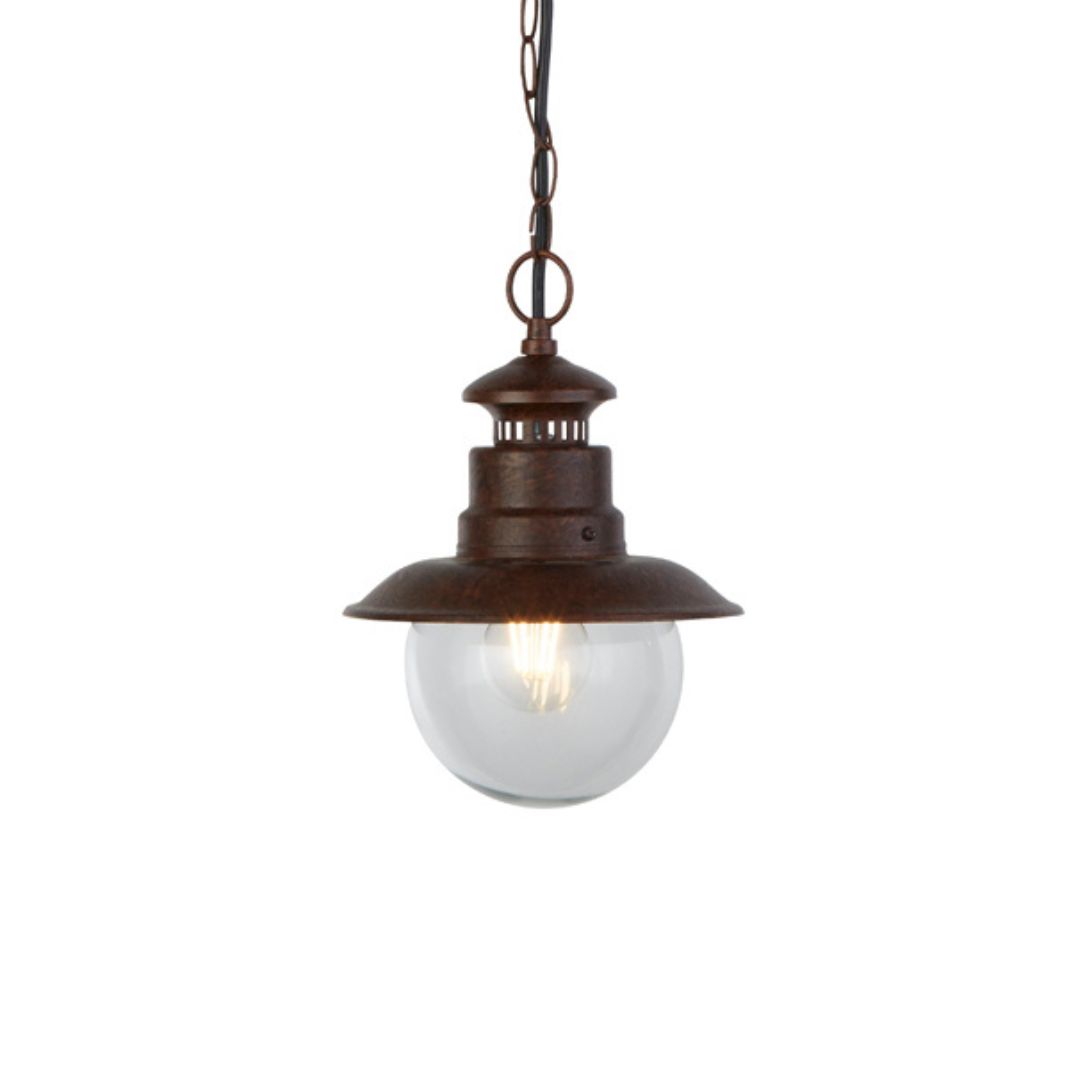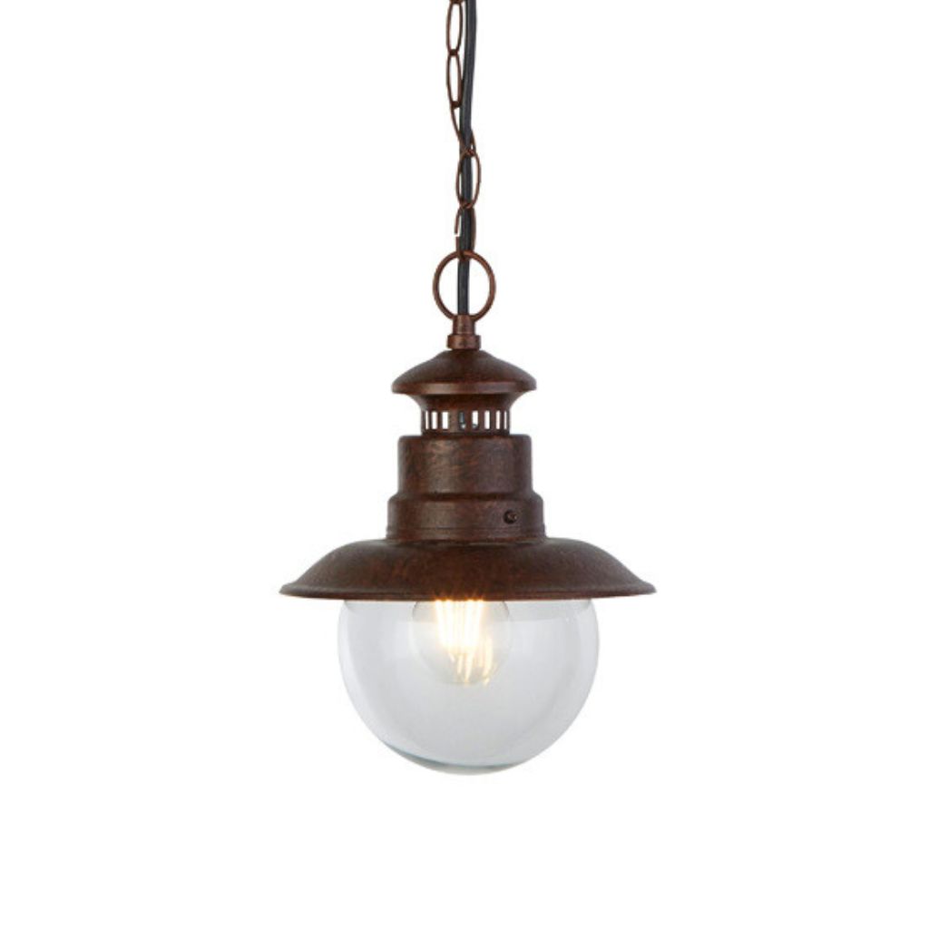 Venkovní svítidlo na zavěšení doplní každou terasu nebo balkón. Montura je kovová antické hnědé barvy a stínidlo je čiré sklo. Výška od stropu je 86cm. Patice pro zdroj E27 na maximálně 60W. Zdroj není součást balení. Svítidlo je z kolekce Station od výrobce Searchlight.