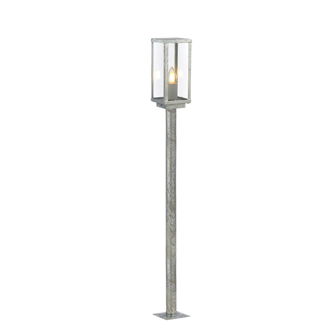 Venkovní svítidlo sloupek vysoký 90cm k cestě nebo domu. Stínidlo je čiré z tabulkového skla. Krytí IP44. Vhodný světelný zdroj je E27 typ svíčka.