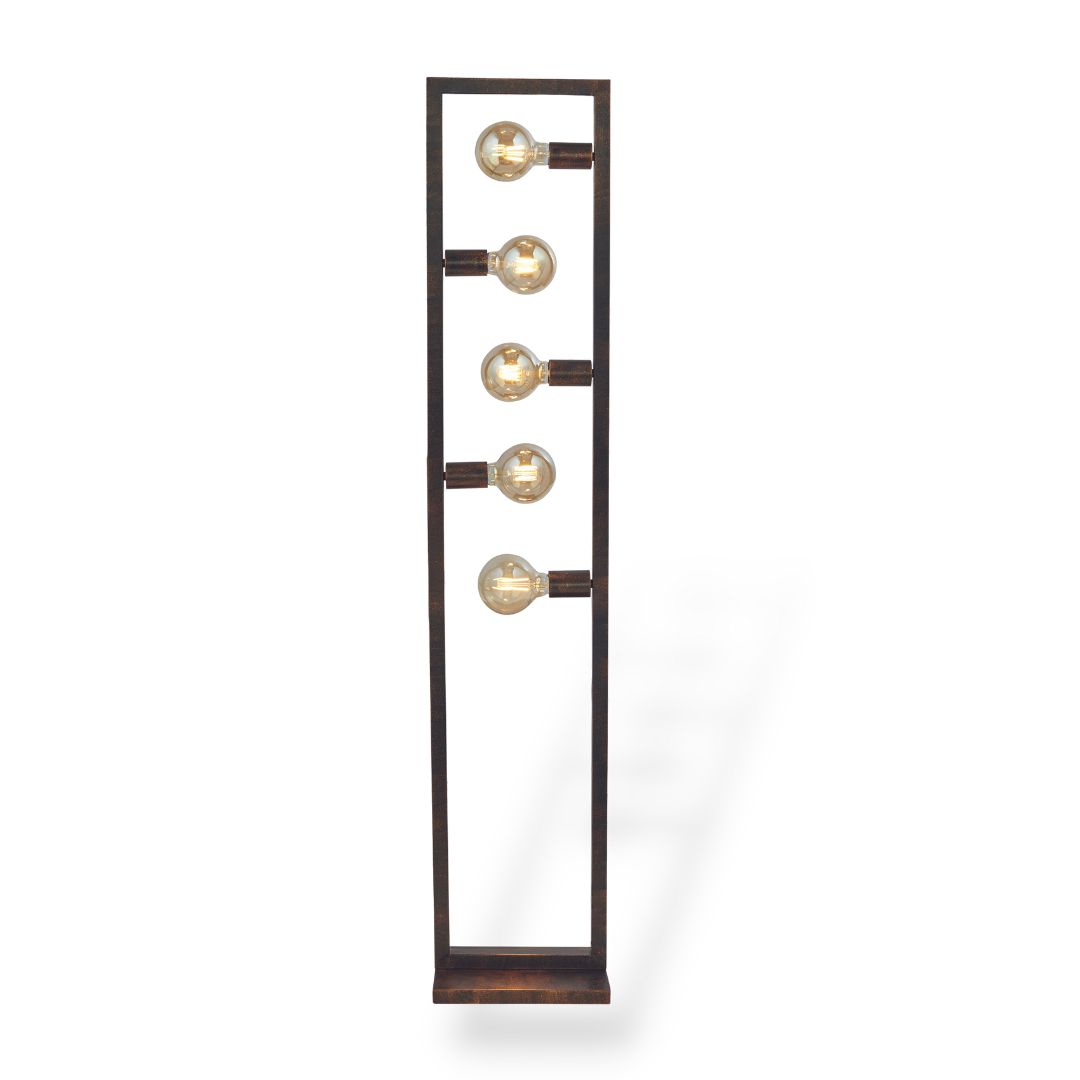 Svítidlo jako stojací lampa v rezavé rustikální barvě vhodná pro industriání styl. Nášlapný vypínač je na kabelu.