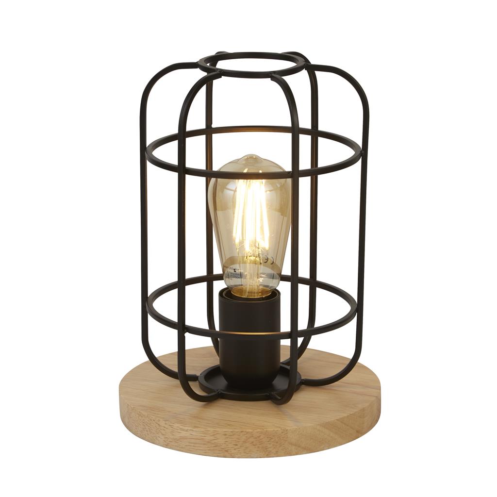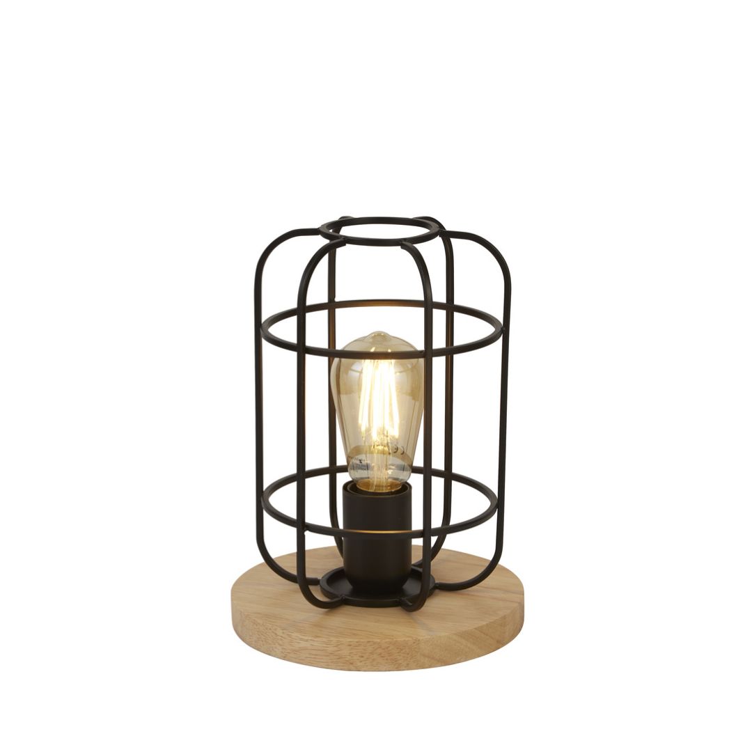 Svítidlo na stůl v černé barvě na dřevěném kruhu. Vhodný do jídelny a interiéru se skandinávským stylem.