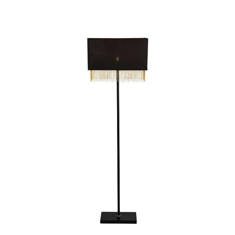 Stojací lampa černé barvy z textilním stínidlem a kovovými třásněmi. Výška 149cm a stínidlo má rozměry délka 45cm a šířka 23cm. Patice žárovky je E27 na max. 1x40W. Žárovka není v balení. Stojací lampa je z kolekce Fringe od výrobce Searchlight.