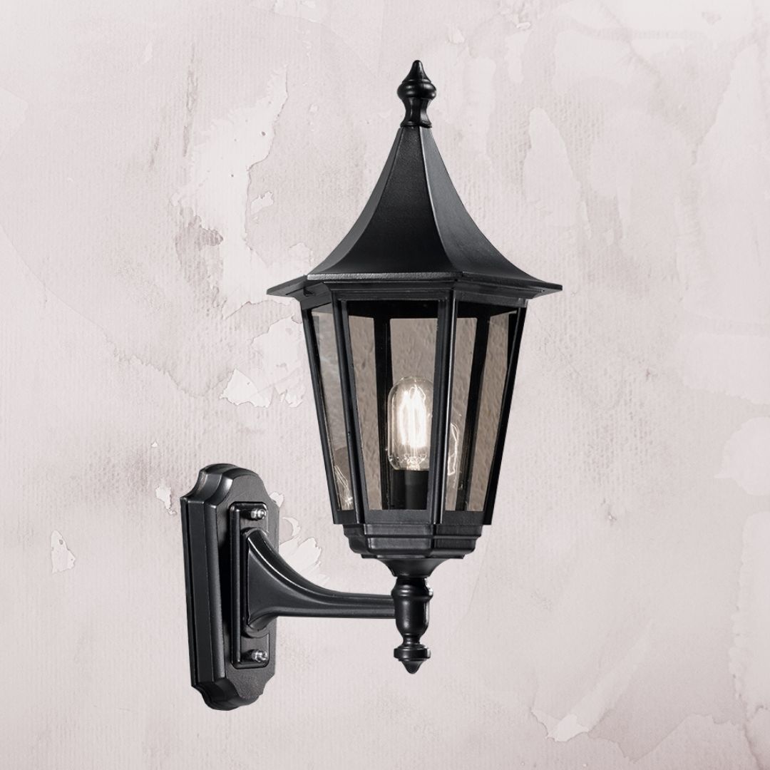Venkovní svítidlo na zeď s krytím IP43. Matná černá kastle z hliníku je doplněná kouřovým čirým sklem. Pěkné zpracování a styl podle italských dobových svítidel v moderním pojetí směr nahoru. Zajímavá je výška svítidla, má 53cm, což je větší než většina podobných svítidel.