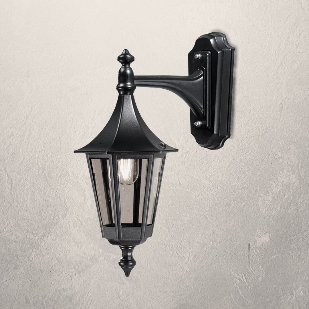 Venkovní svítidlo na zeď s krytím IP43. Matná černá kastle z hliníku je doplněná kouřovým čirým sklem. Pěkné zpracování a styl podle italských dobových svítidel v moderním pojetí.