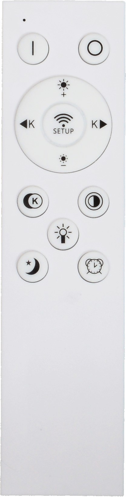 Stropní a nástěnné LED svítidlo s dálkovým ovladačem, pomocí kterého můžete měnit jak intenzitu bílého světla, tak jeho chromatičnost (teplá bílá 3000K, studená bílá 4000K a denní bílá 6500K).